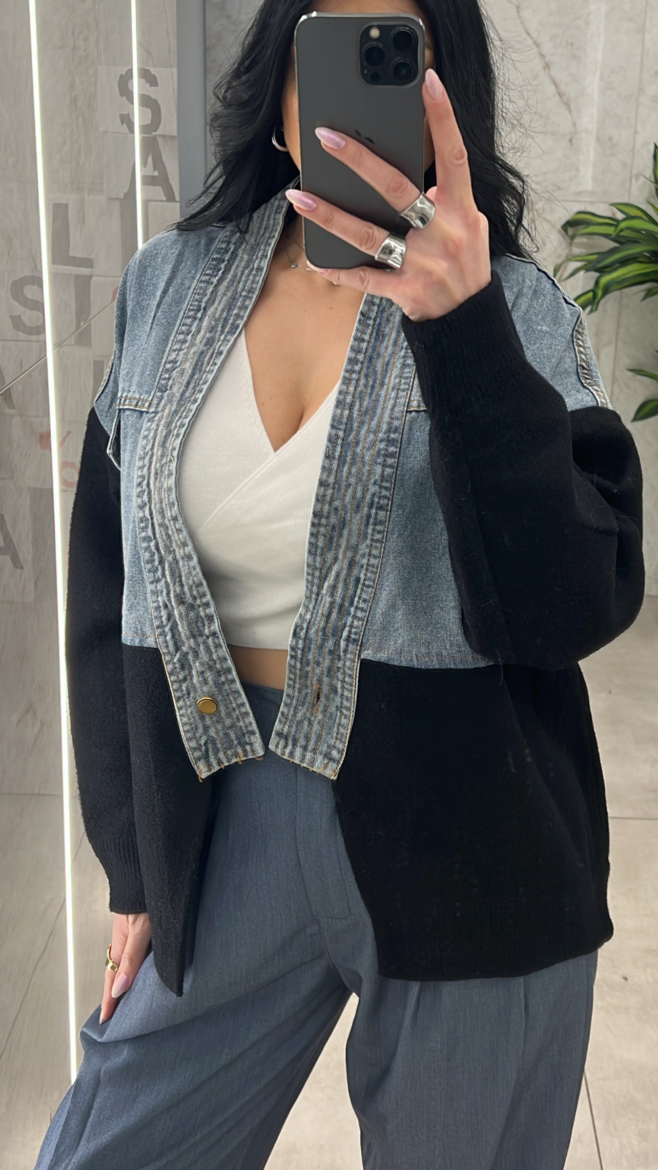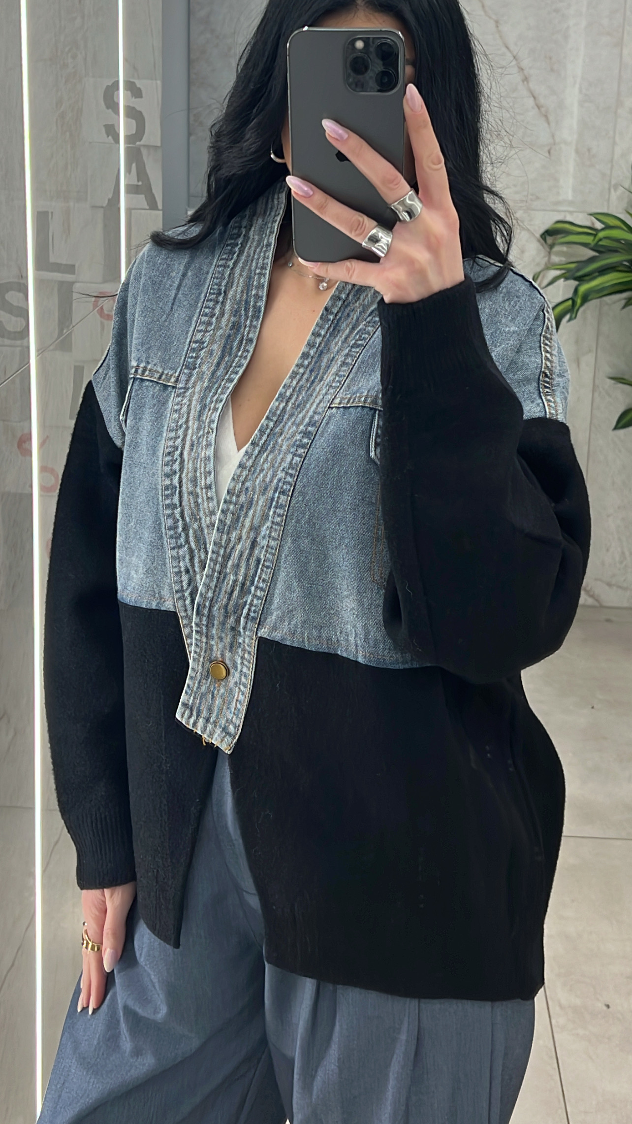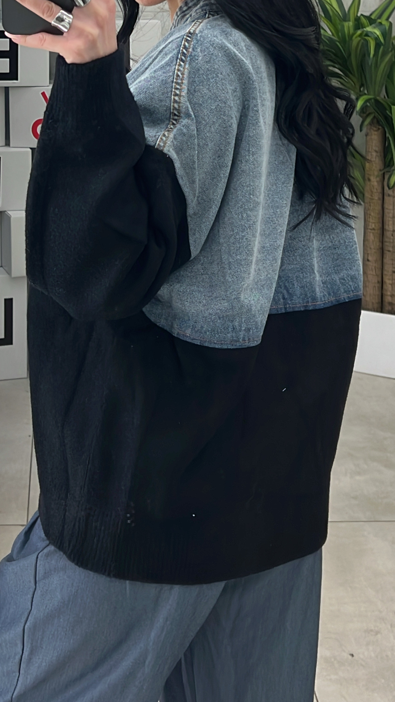 Oversized Τζάκετ Τζίν Με Πλεκτό 6022/ Μαυρό