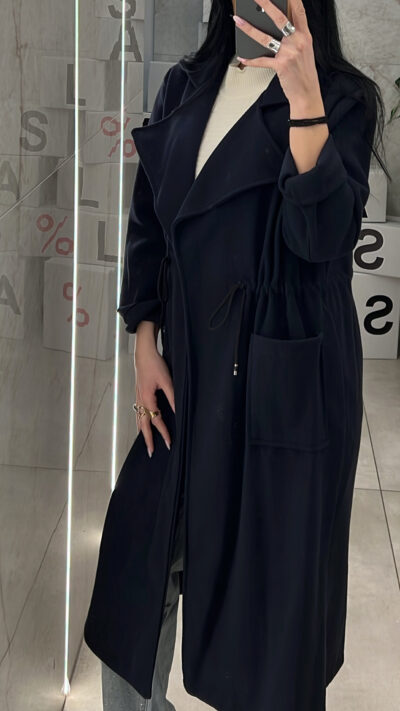 Παλτό χωρίς εσωτερική φόδρα , με τσέπες και κορδόνι στην μεση για προσαρμογή.