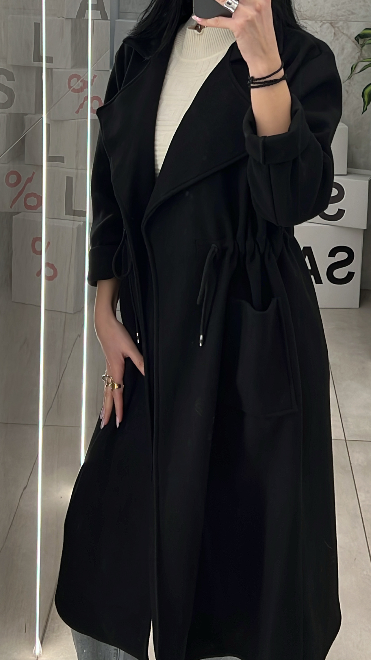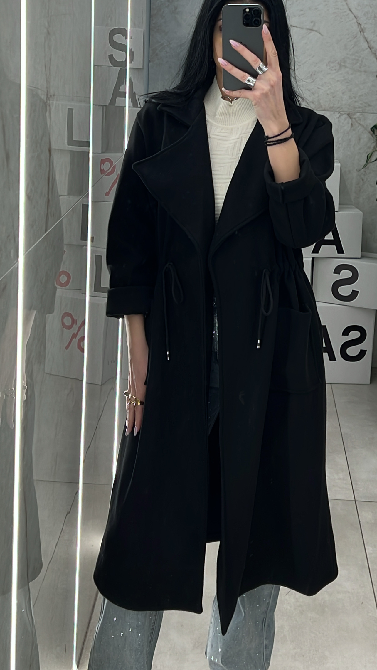 Παλτό χωρίς εσωτερική φόδρα , με τσέπες και κορδόνι στην μεση για προσαρμογή.
