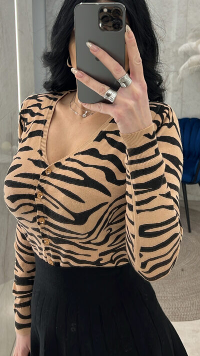 Ζακέτα πλεκτή ζεβρέ 07804/Μπεζ