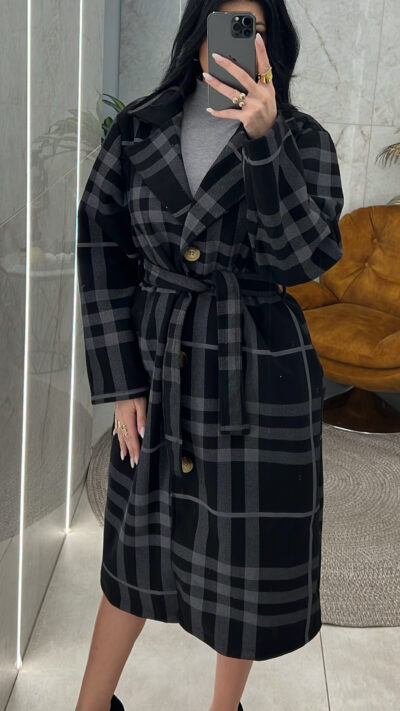 Παλτό καρό 33095/Μαύρο