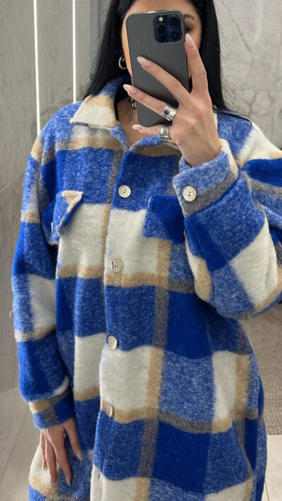 Παλτό Oversized 8018/Καρό Μπλε