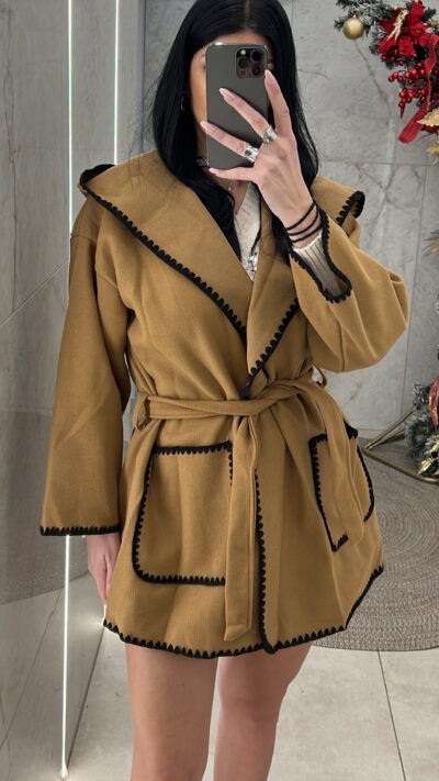 Παλτό oversized με κουκούλα 01691/ Ταμπά