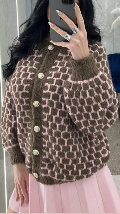 Ζακέτα πλεκτή 31935/Καφέ-ροζ
