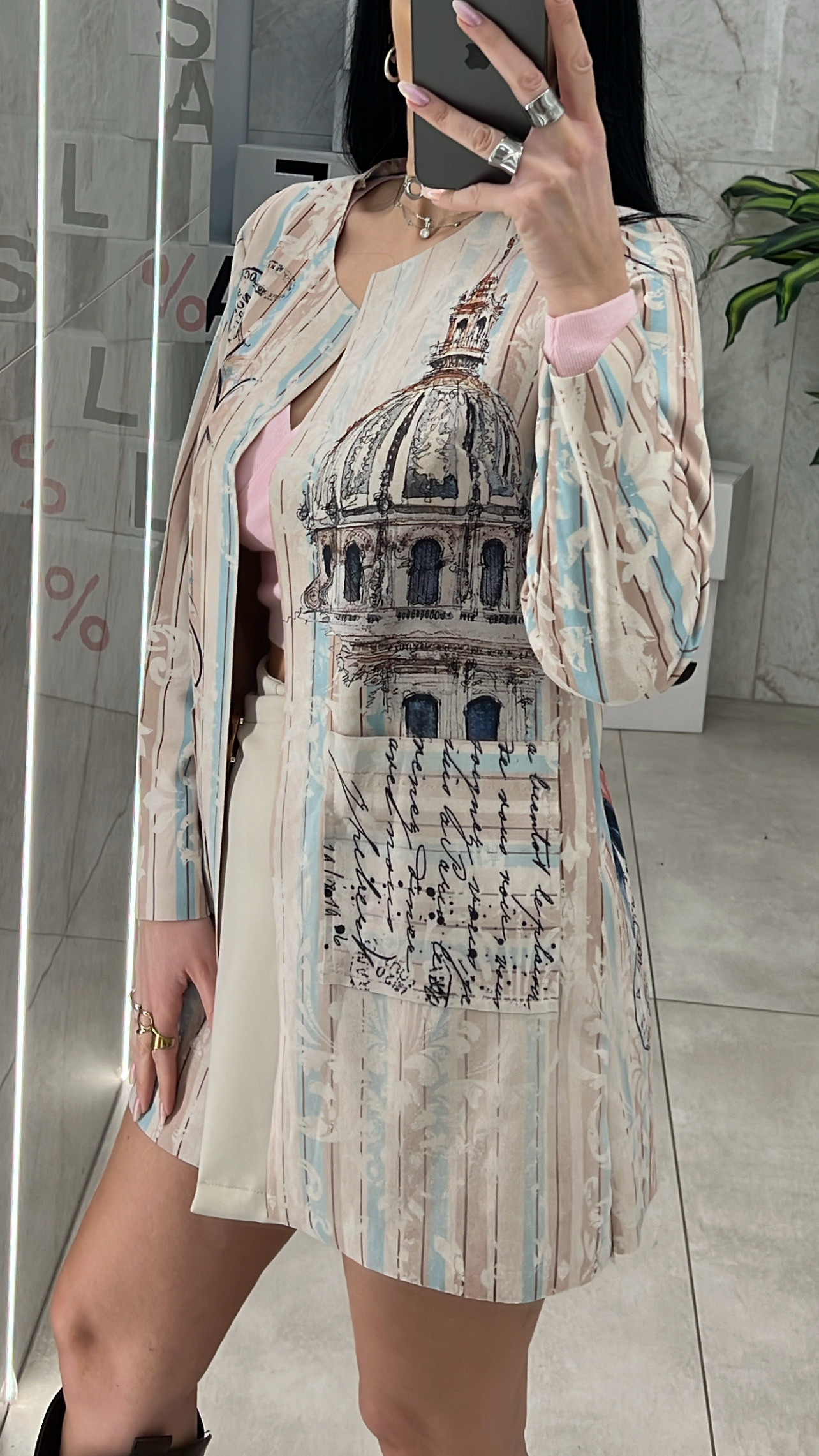 Πανωφόρι αλκανταρα με σχέδιο και τσέπες .