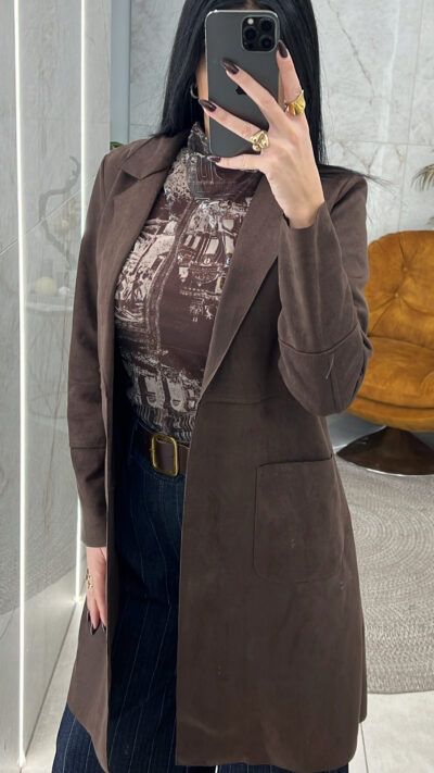 Πανωφόρι σουέτ με τσέπες μπροστά και δεν κλείνει μπροστά
