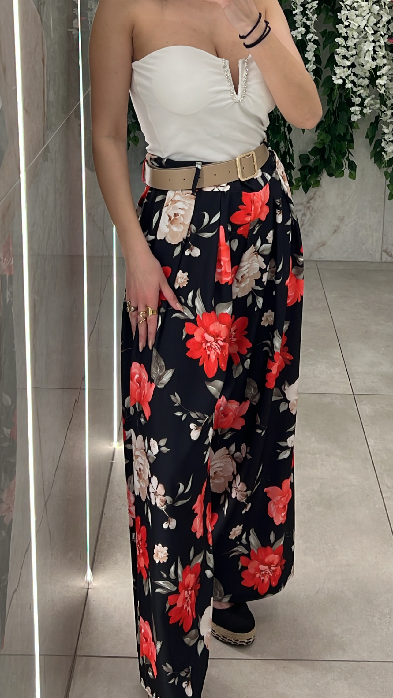 Παντελόνα φλοράλ με δικη της ζωνη και λάστιχο στην μέση  .