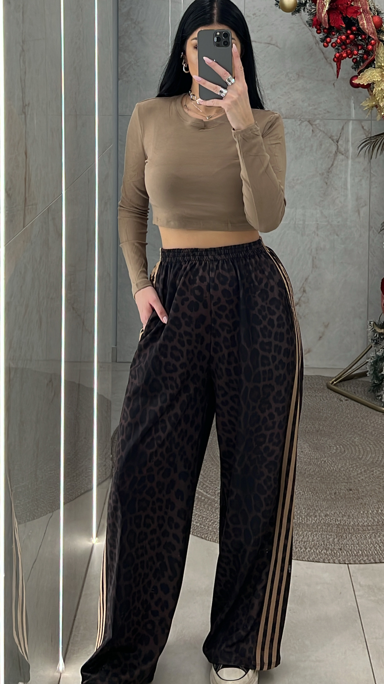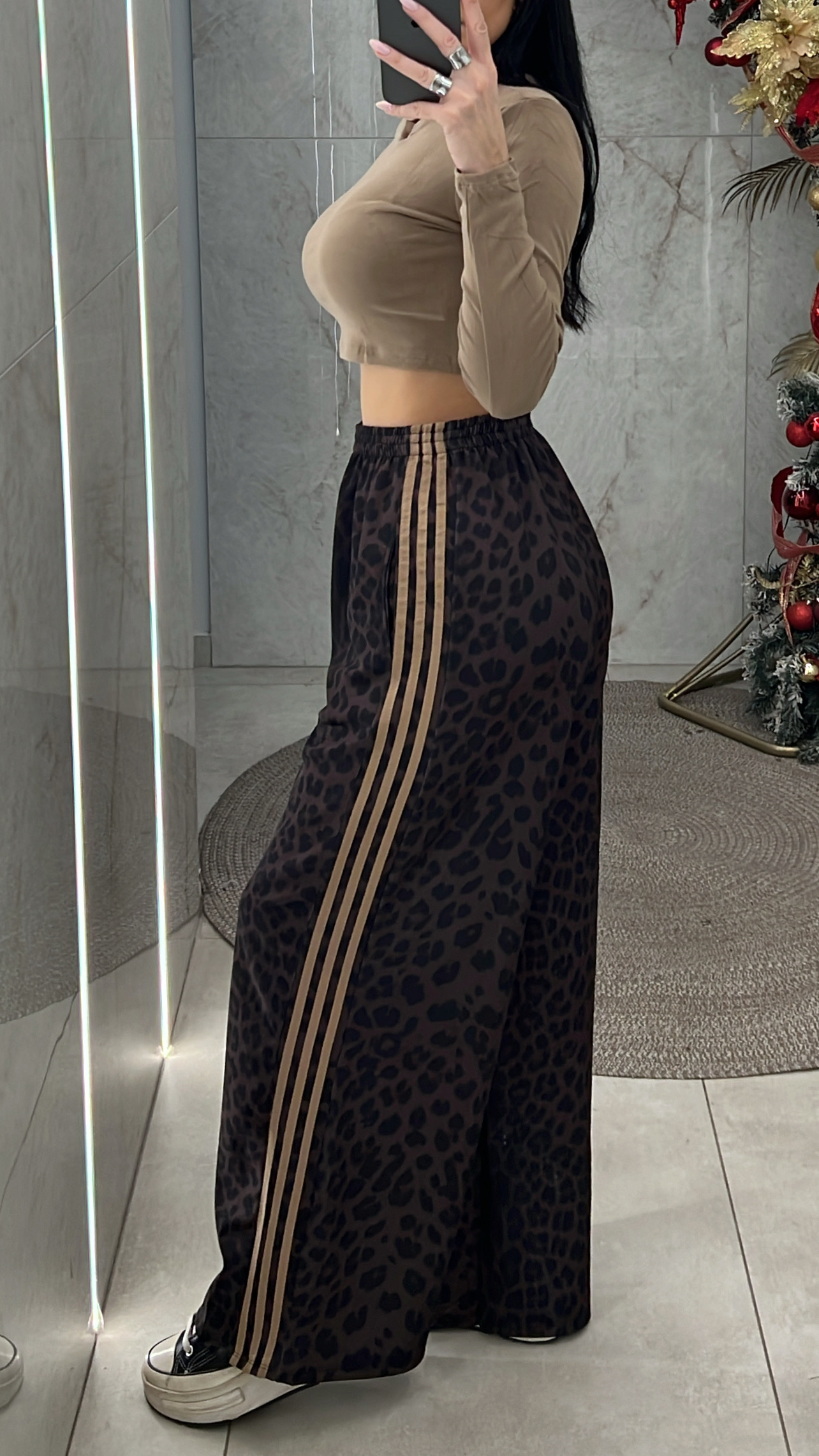 Παντελόνα φόρμας λεοπάρ με χρυσές ρίγες στο πλάι λάστιχο στη μέση και τσέπες