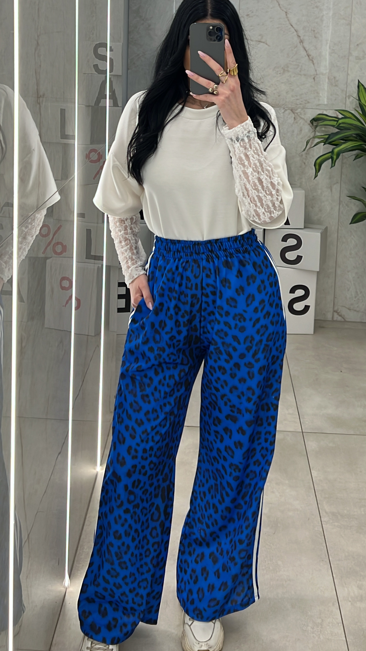 Παντελόνα φόρμας λεοπάρ με ρίγες στο πλάι ,λάστιχο στη μέση και τσέπες.