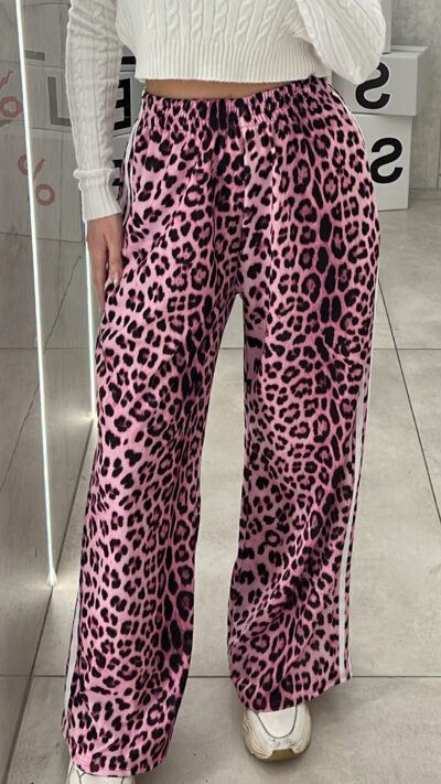 Παντελόνα φόρμας λεοπάρ με ρίγες στο πλάι ,λάστιχο στη μέση και τσέπες.