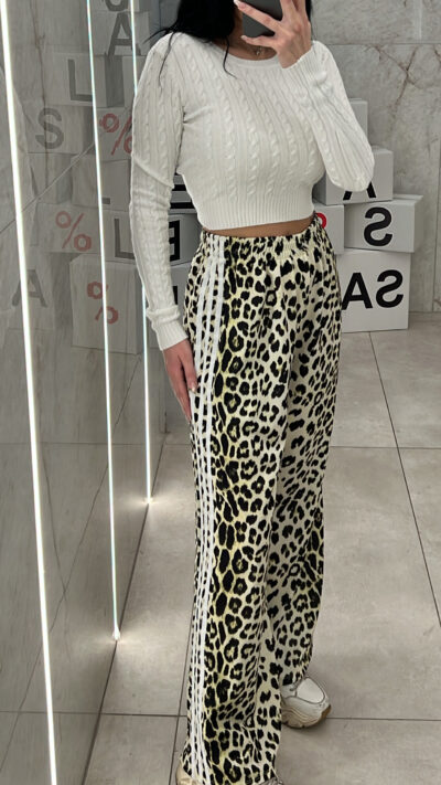 Παντελόνα φόρμας λεοπάρ με ρίγες στο πλάι ,λάστιχο στη μέση και τσέπες.