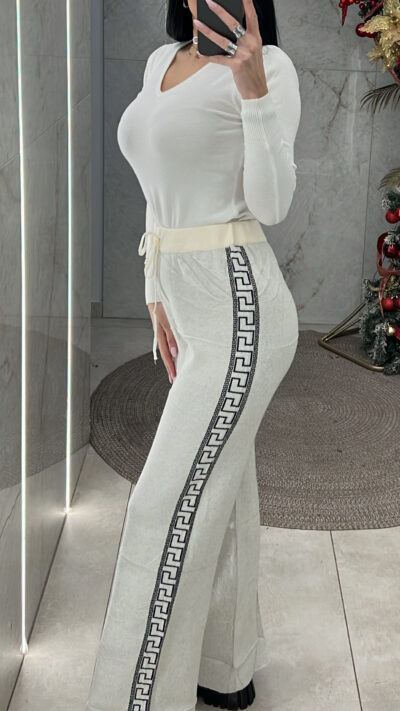 Παντελόνα Πλεκτή με Μαίανδρο στο πλάι 5518/Εκρού