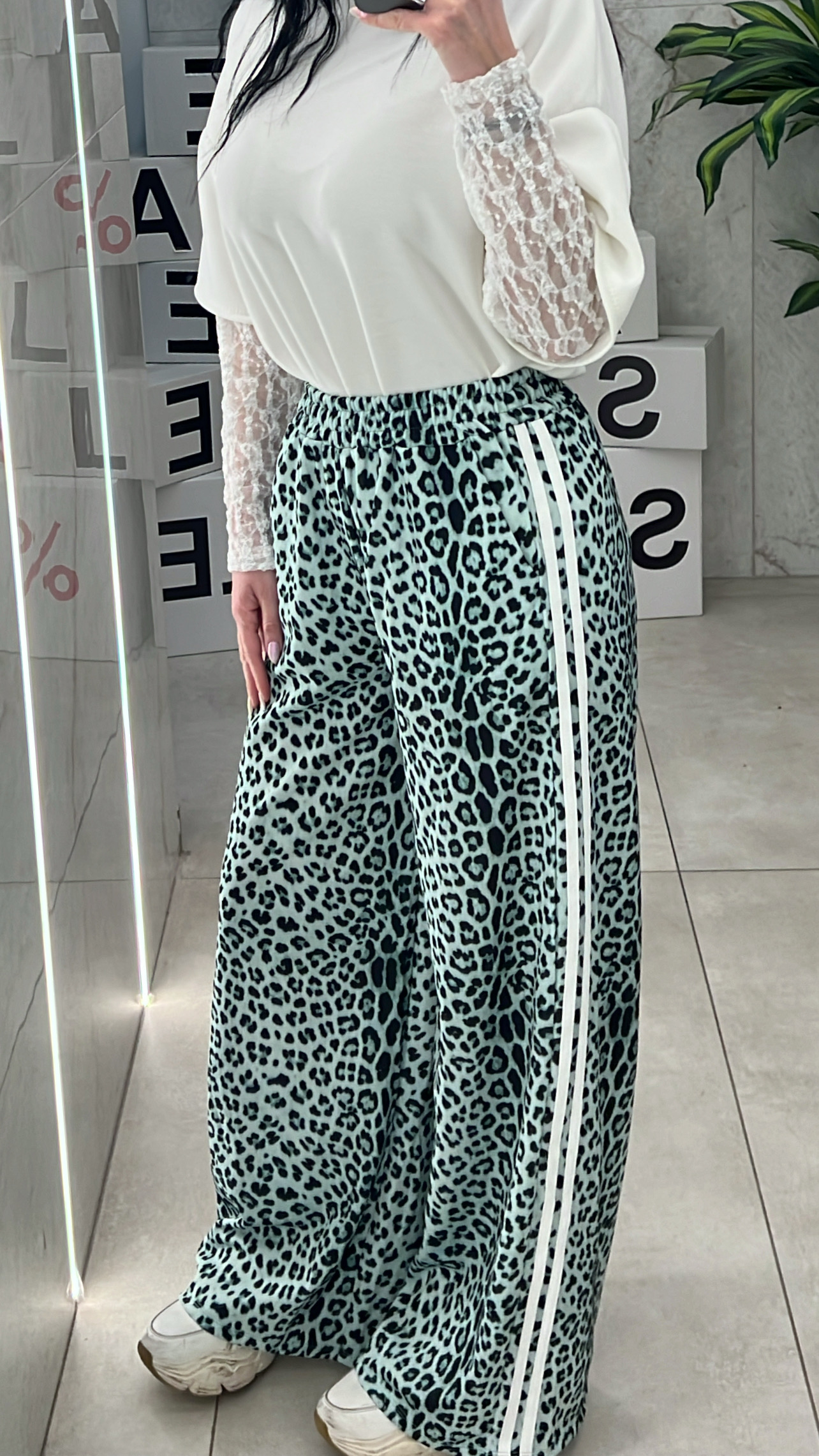 Παντελόνα φόρμας λεοπάρ με ρίγες στο πλάι ,λάστιχο στη μέση και τσέπες.