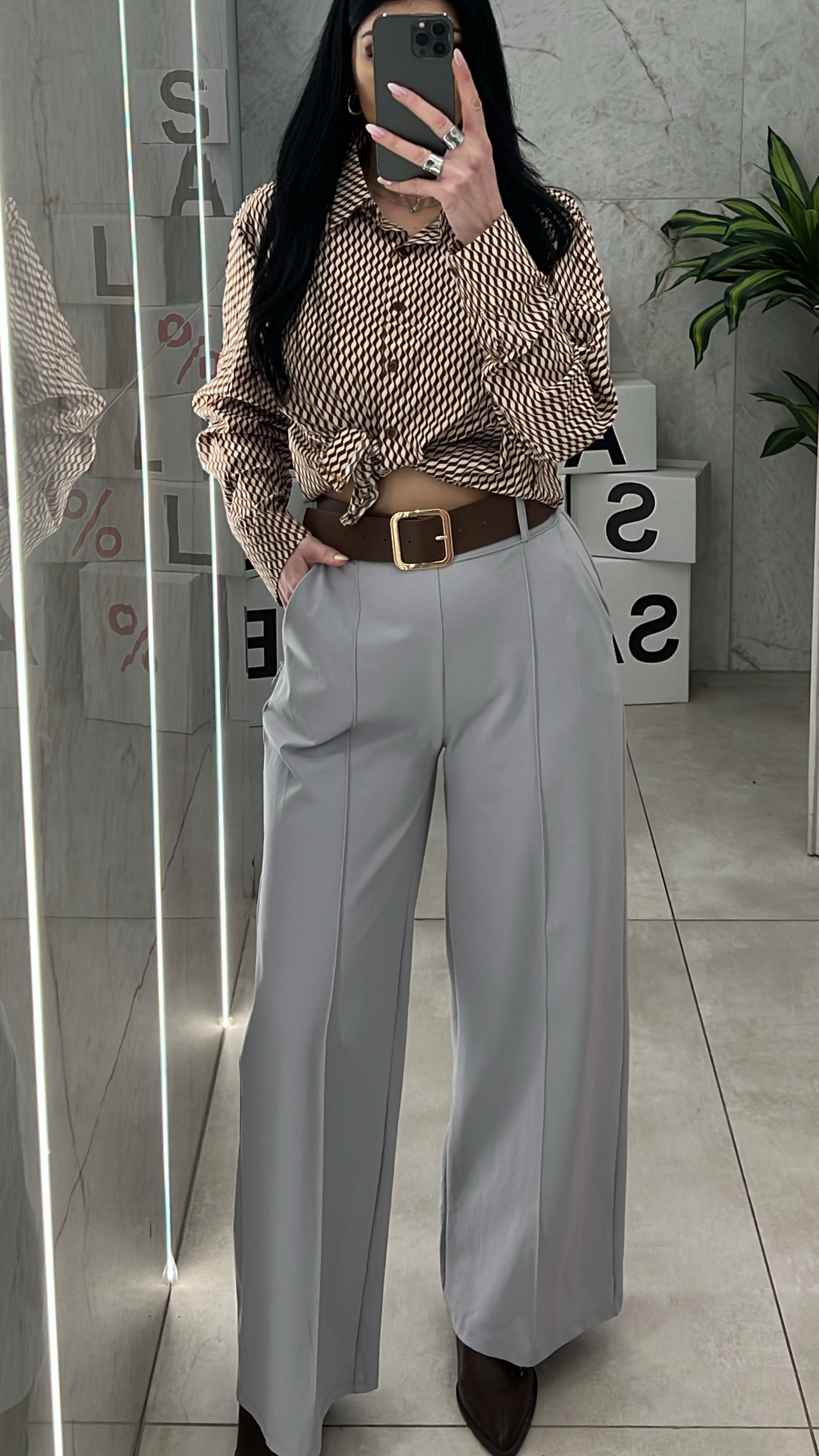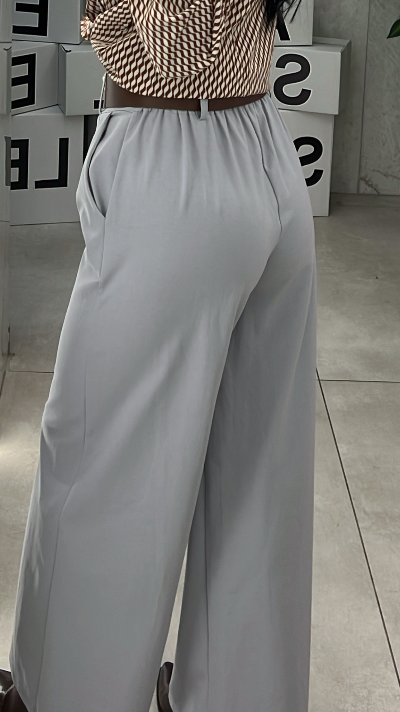 Παντελόνι ψηλόμεσο με κορδόνι 001871/Γκρι