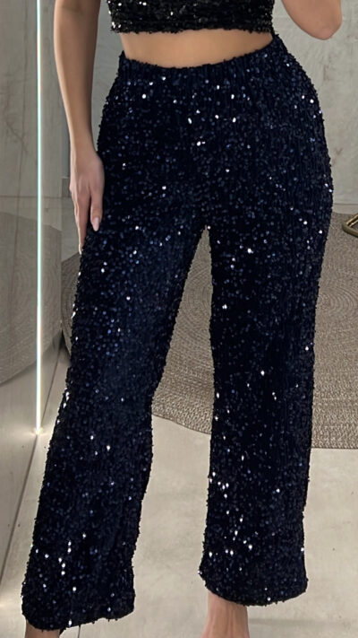 Ψηλόμεση παντελόνα παγιέτα με λάστιχο στην μέση
