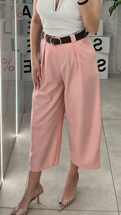 Παντελόνα Ζιπ κιλότ Με Ζώνη 25896/ Ρόζ