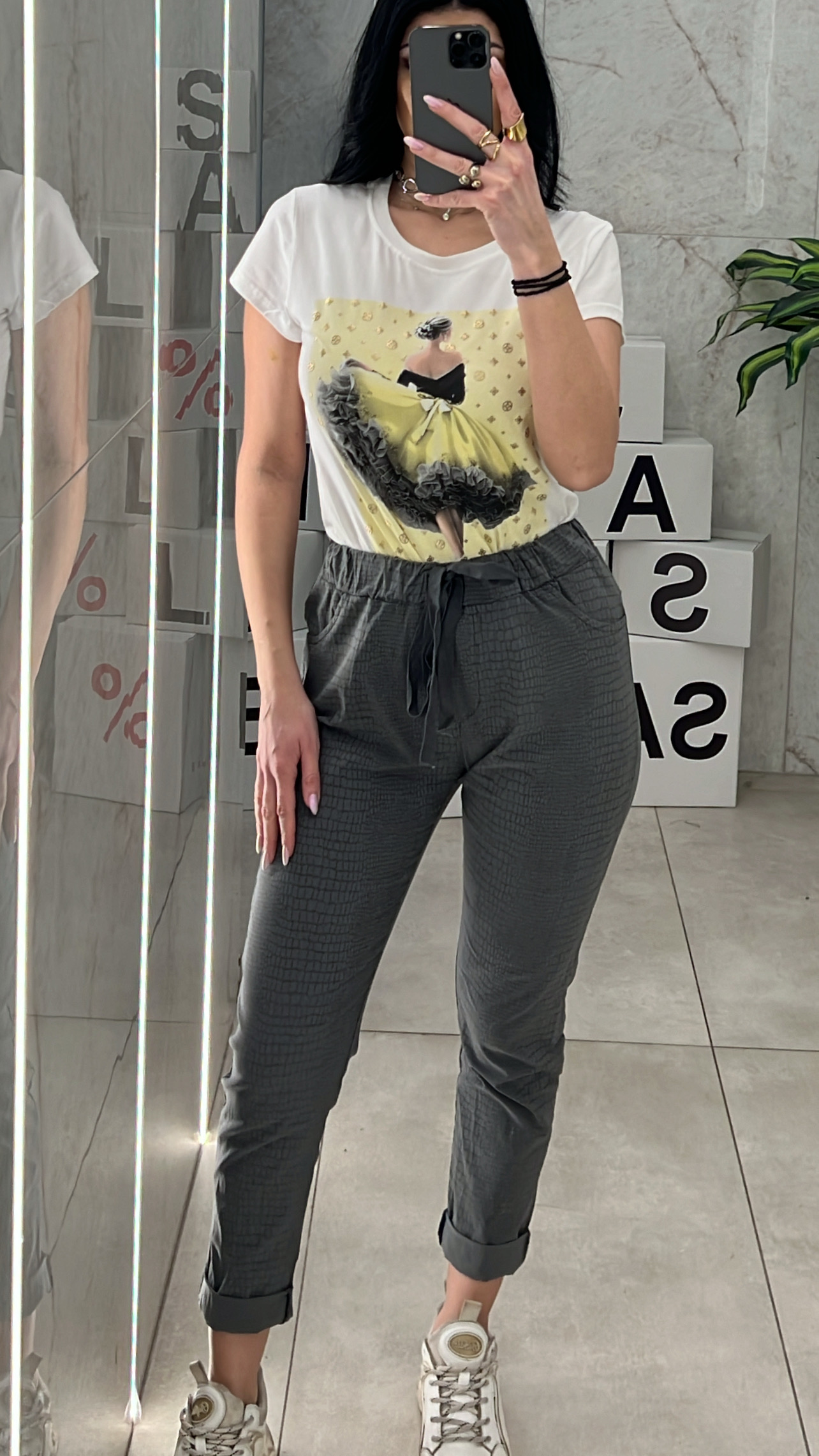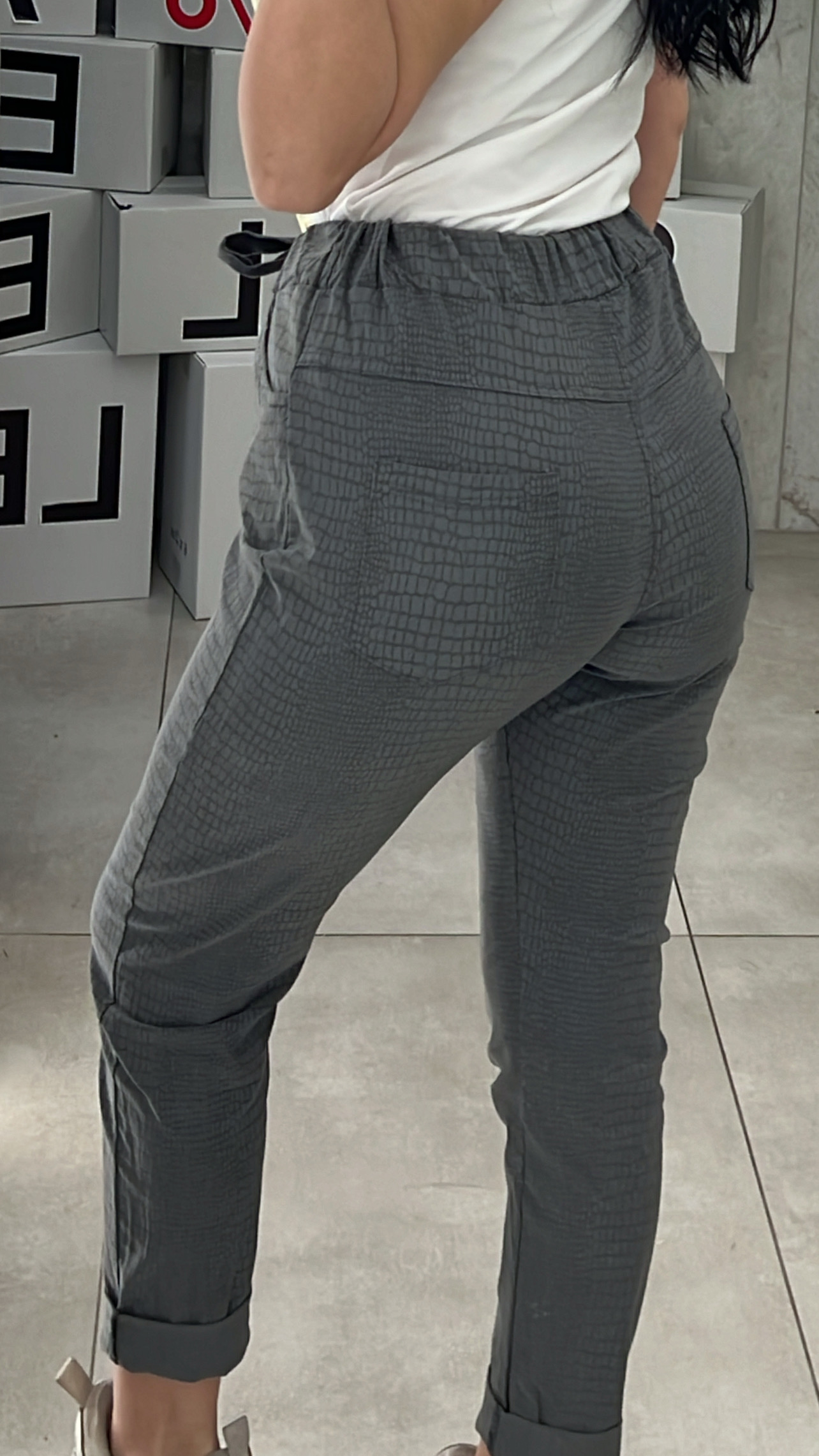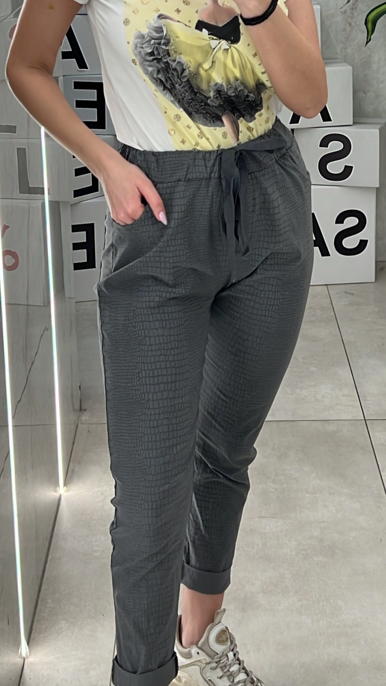 Παντελόνι με print φιδι , τσέπες ,λάστιχο και κορδόνι στην μέση .
