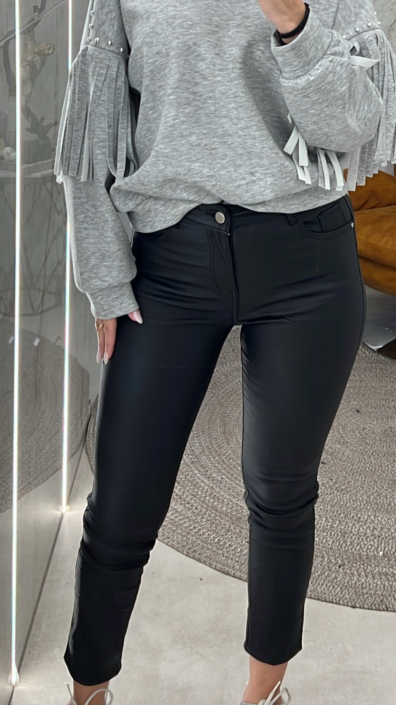 Παντελόνα με Ζωνάκι Δερματίνη/Μαύρο