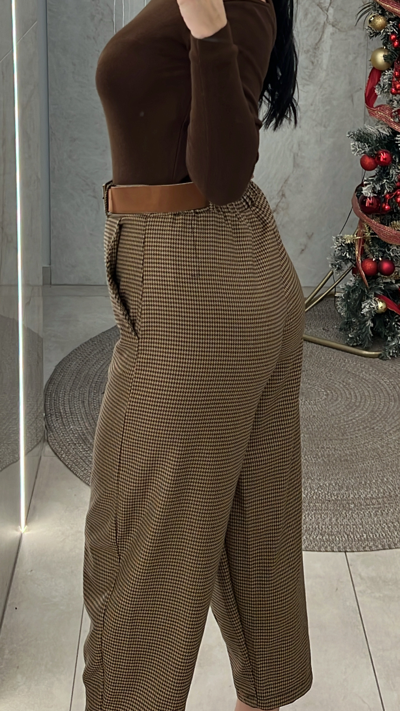 Παντελόνι buggy pied de poule κάμελ