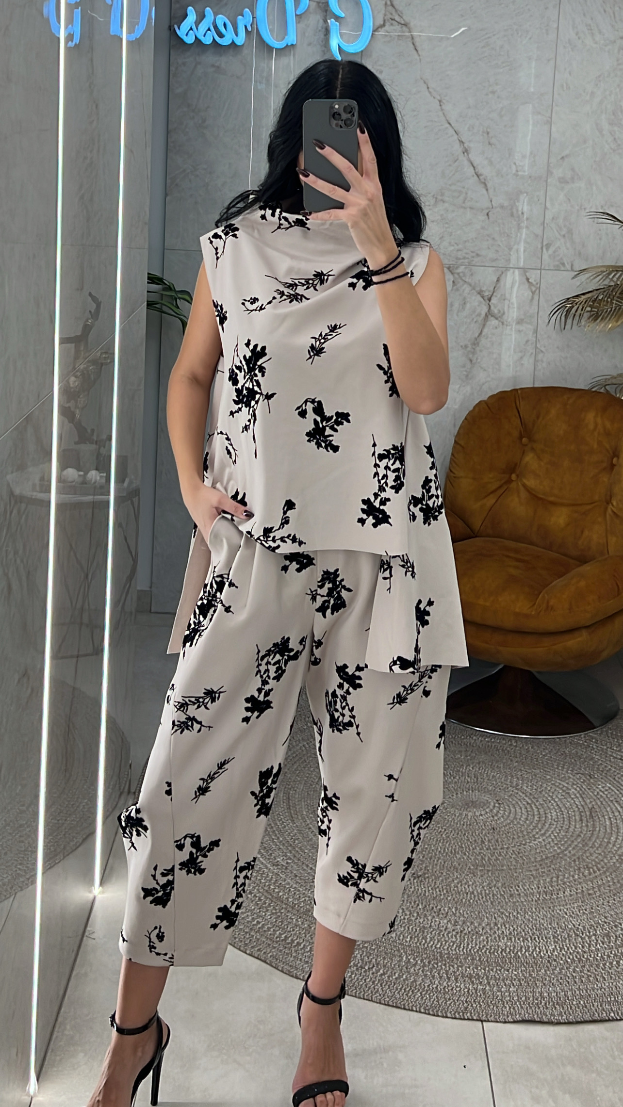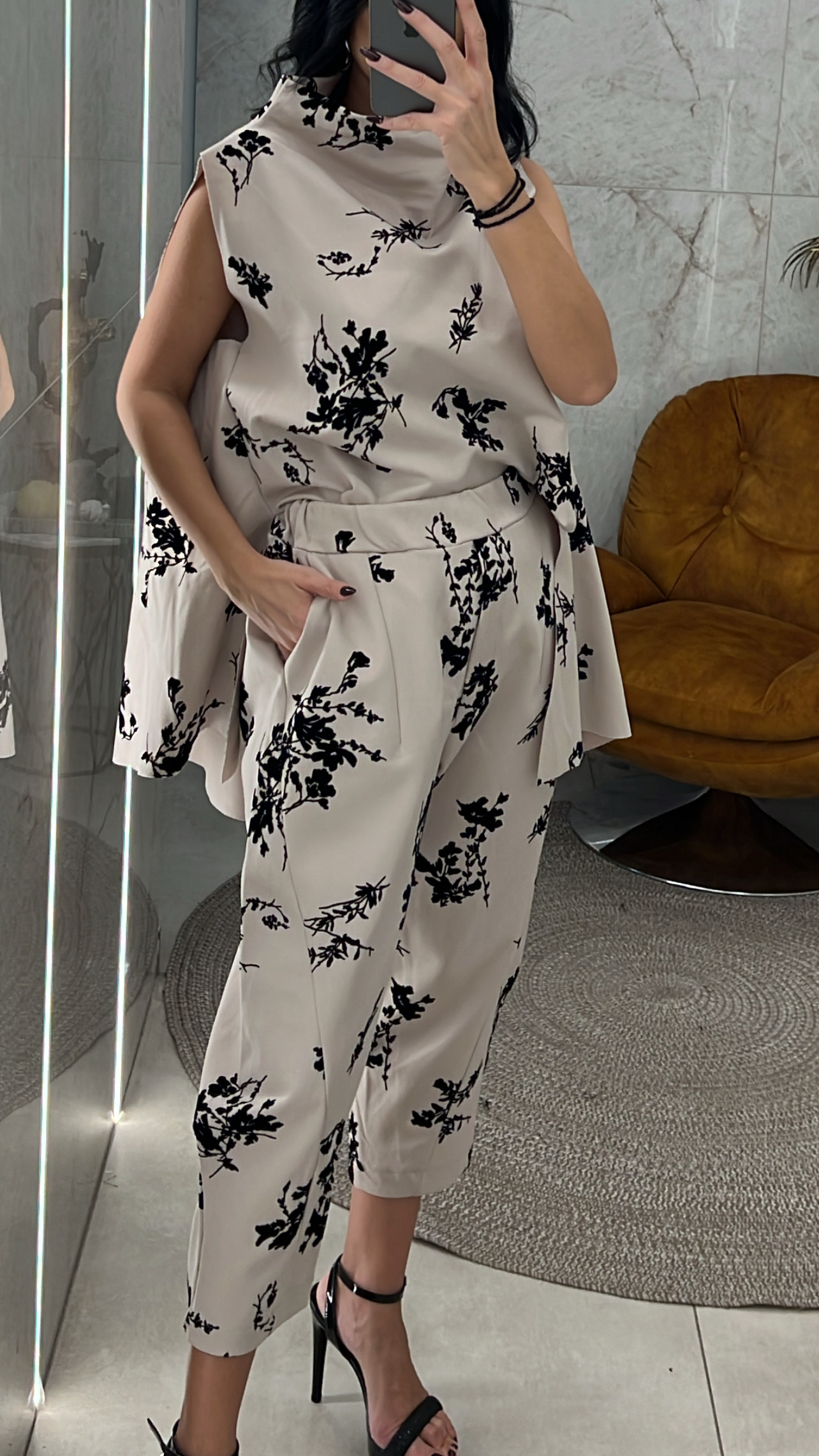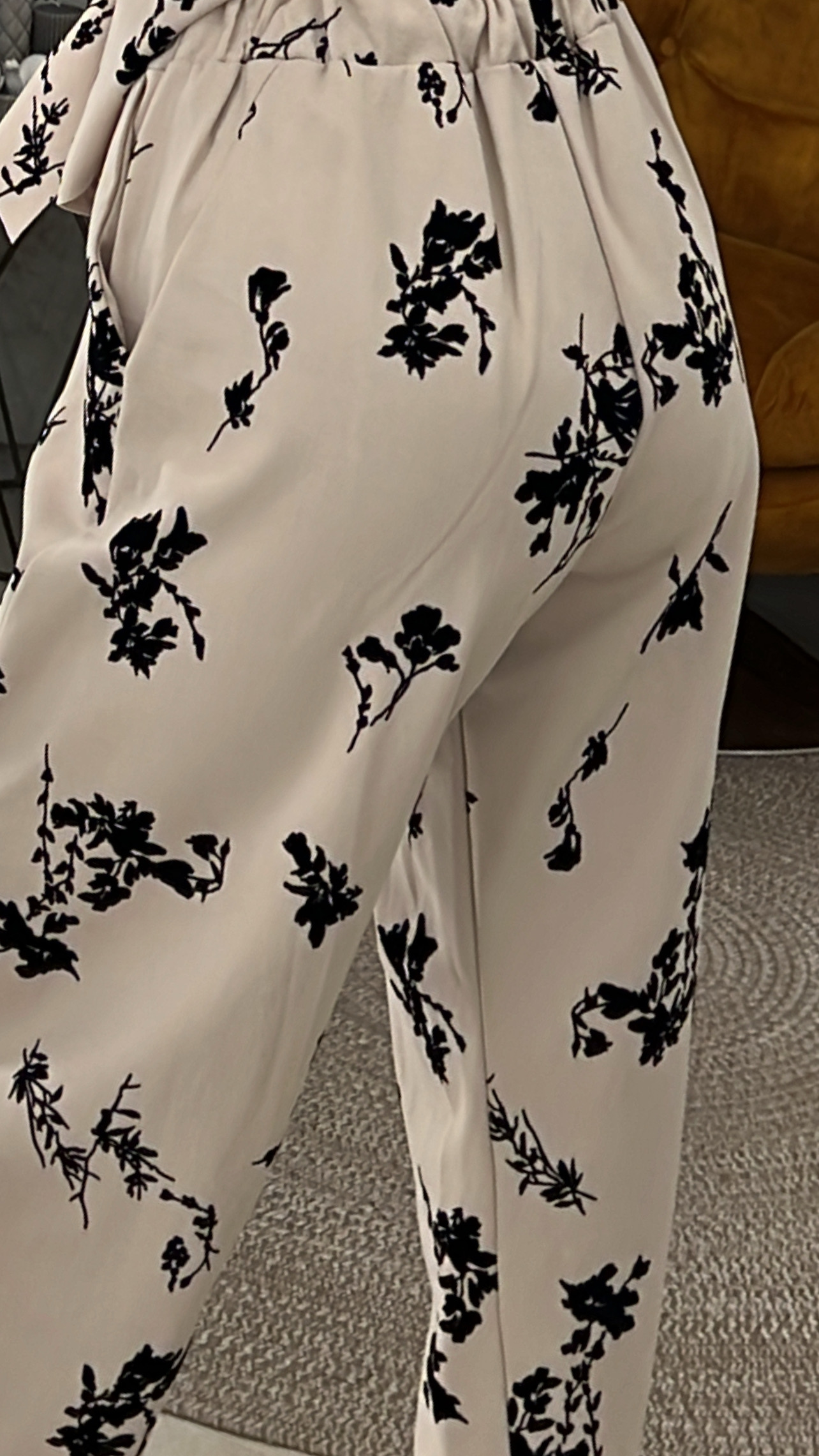 Παντελόνι με ανάγλυφα λουλούδια 9516/Μπεζ