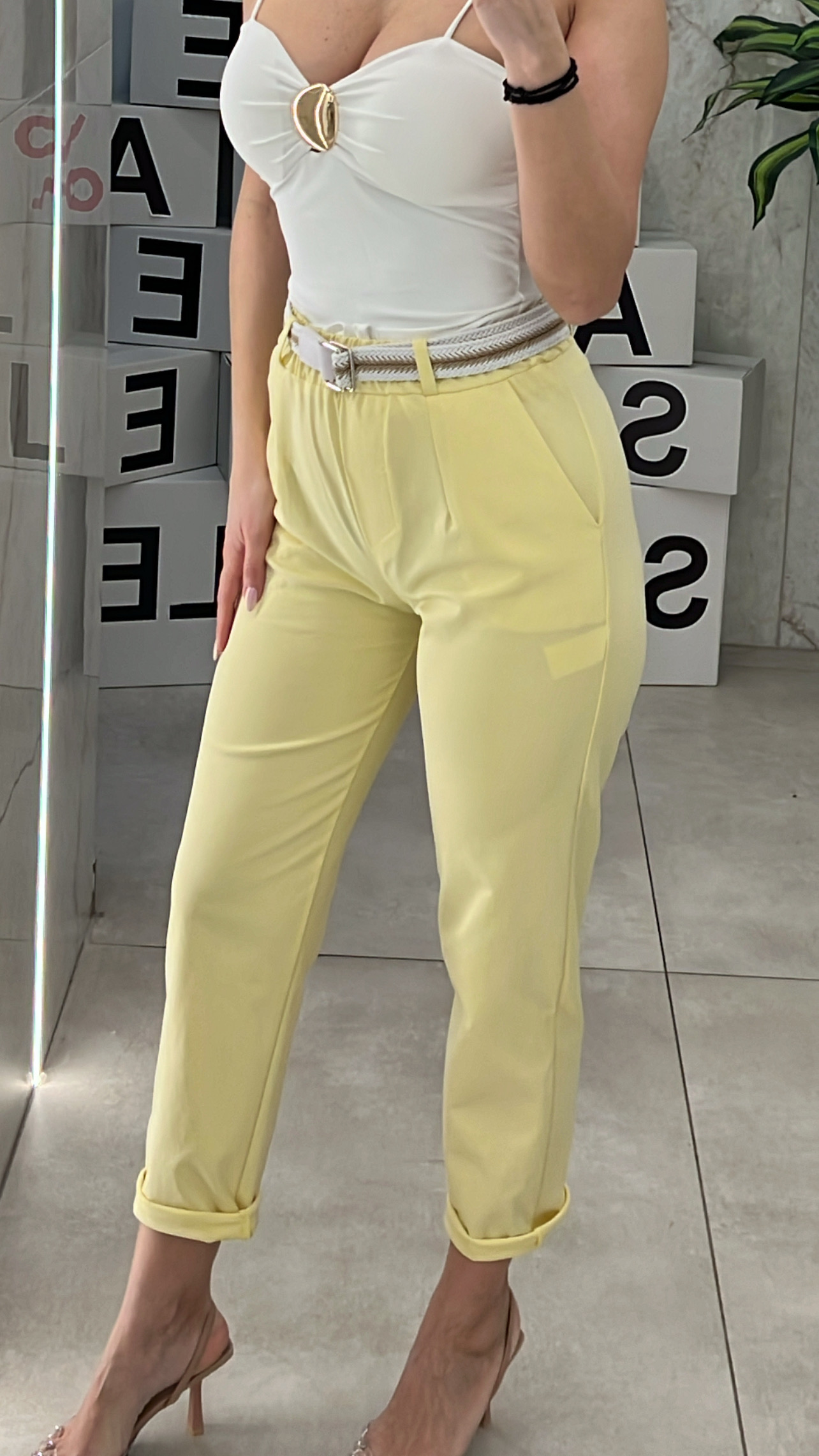 Παντελόνι Με Ζώνη 2037/Κίτρινο