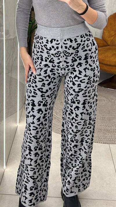 Παντελόνι Πλεκτό Λεοπάρ 6703/Γκρι