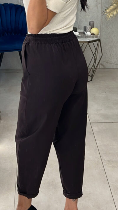 Παντελόνι ψηλόμεσο/Καφέ σκούρο με λάστιχο και κορδόνι στην μέση και έχει τσέπες