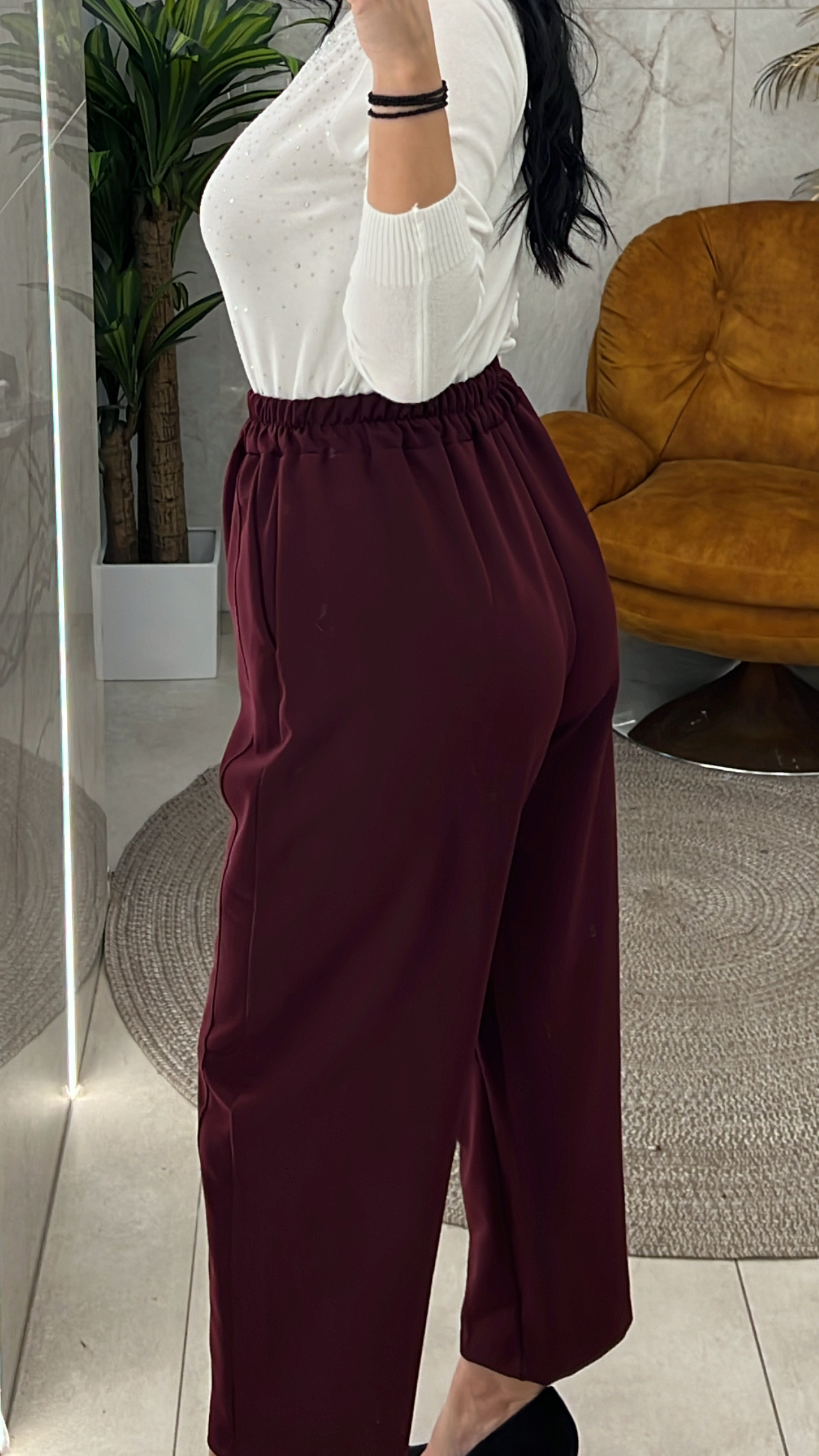 Παντελόνα με Ζωνάκι Δερματίνη/Μπορντό
