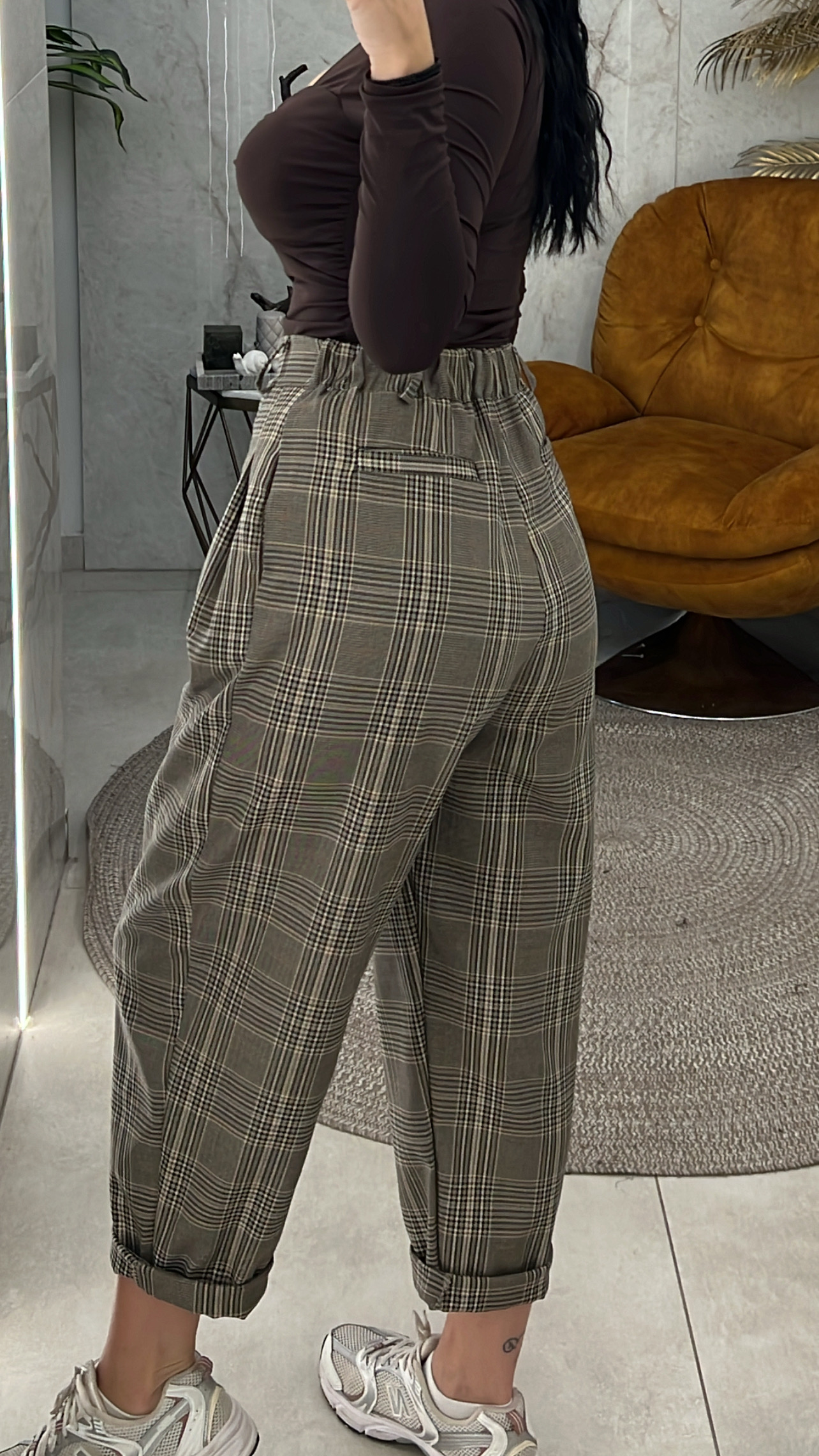 Παντελόνι ψηλόμεσο buggy καρό έχει λάστιχο πίσω στην μέση και τσέπες μπροστά