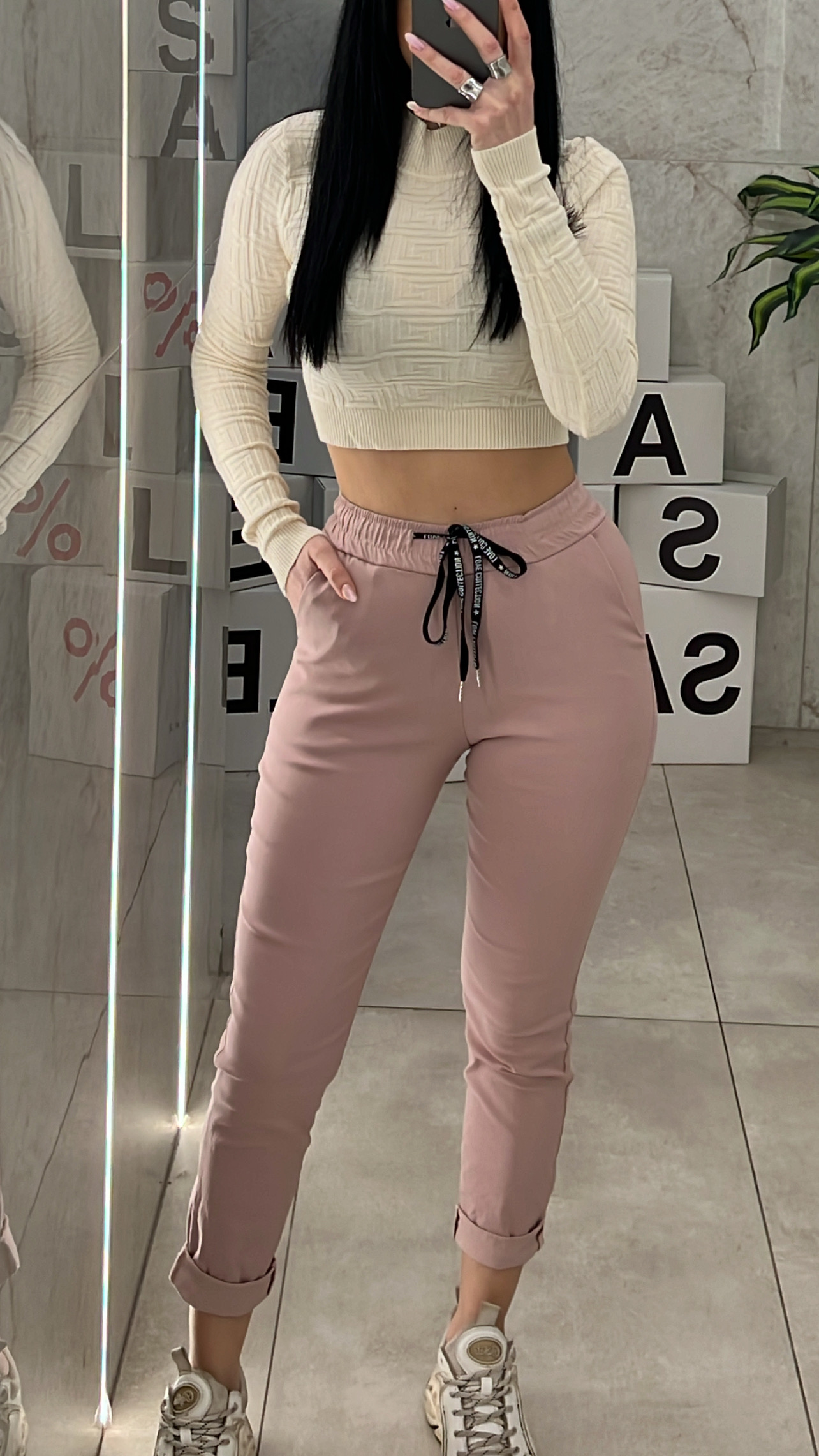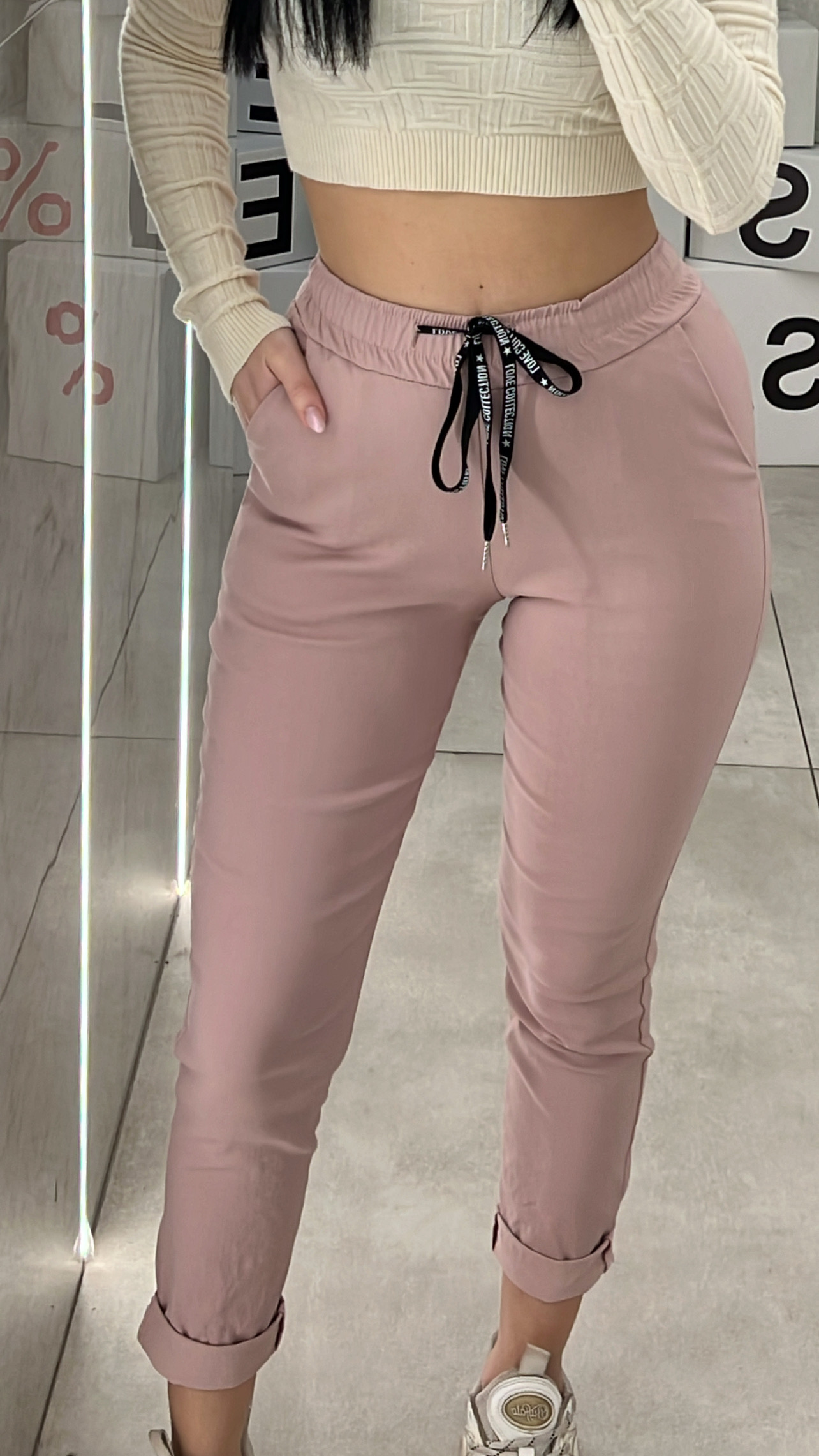 Παντελόνι ψηλόμεσο ελαστικό με λάστιχο και κορδόνι στην μέση με τσέπες