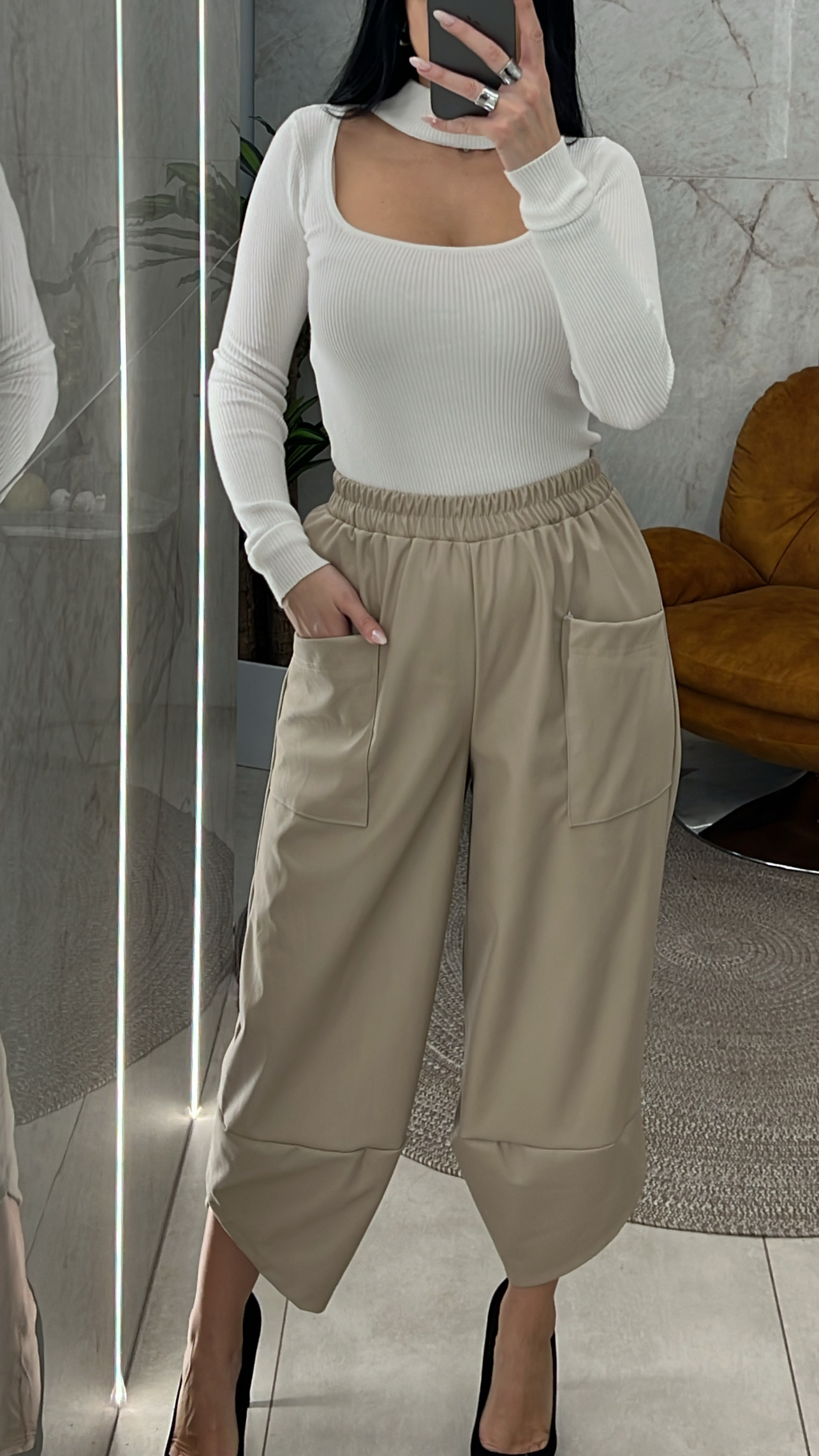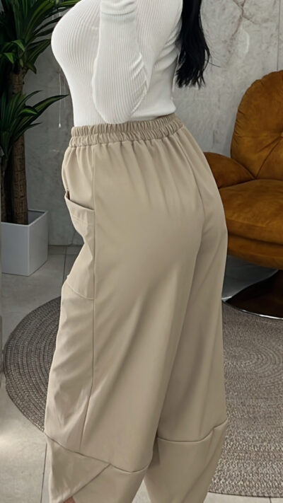 Παντελόνι σαλβάρι δερματίνη 3197/Μπεζ
