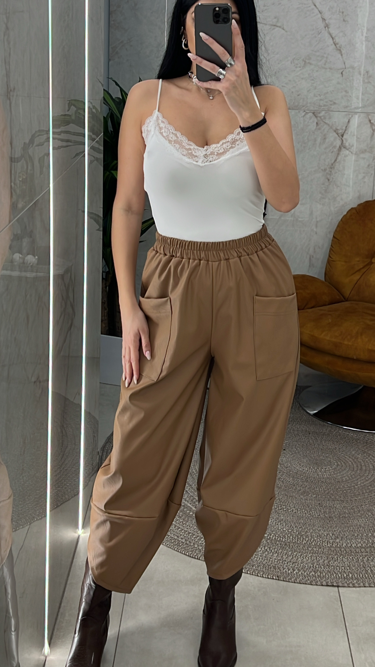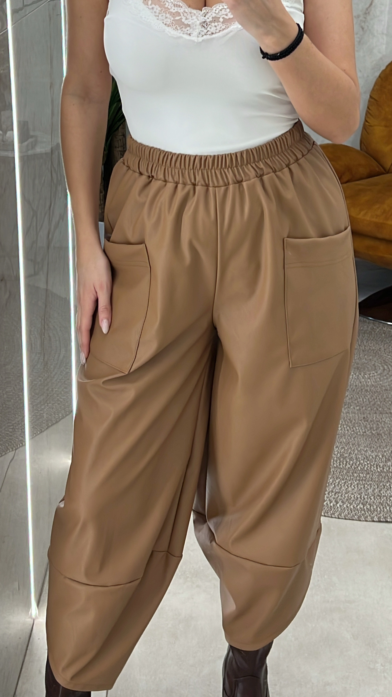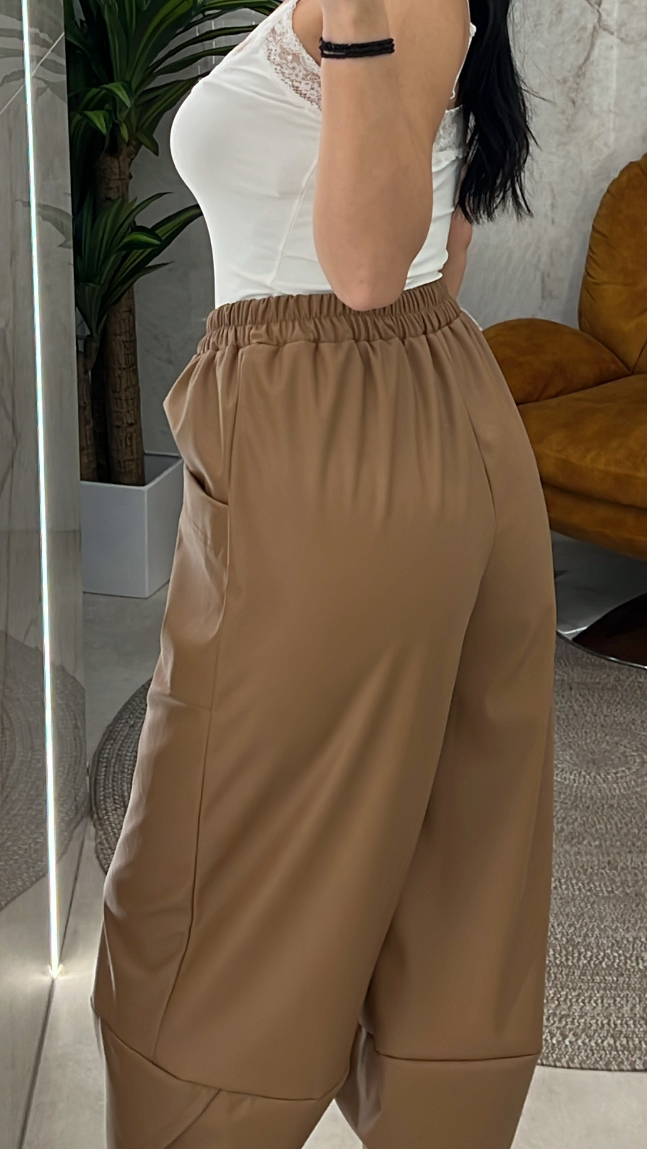 Παντελόνι σαλβάρι δερματίνη 3197/Ταμπά