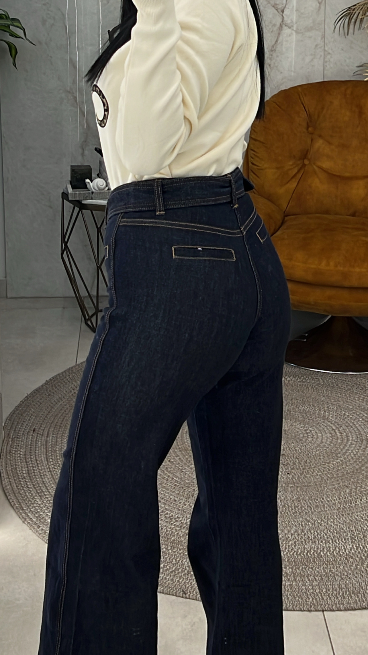 Τζιν Ψηλόμεσο με Ζώνη-8227/Μπλε