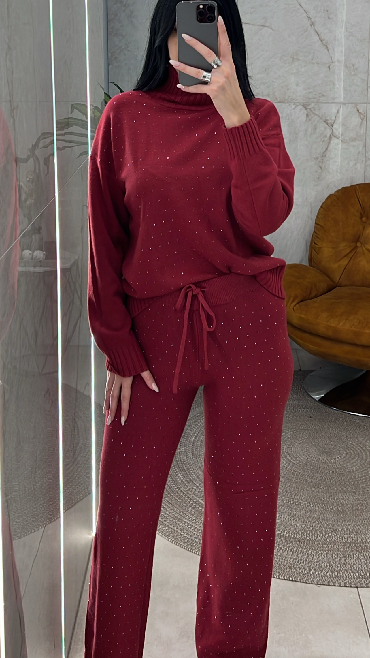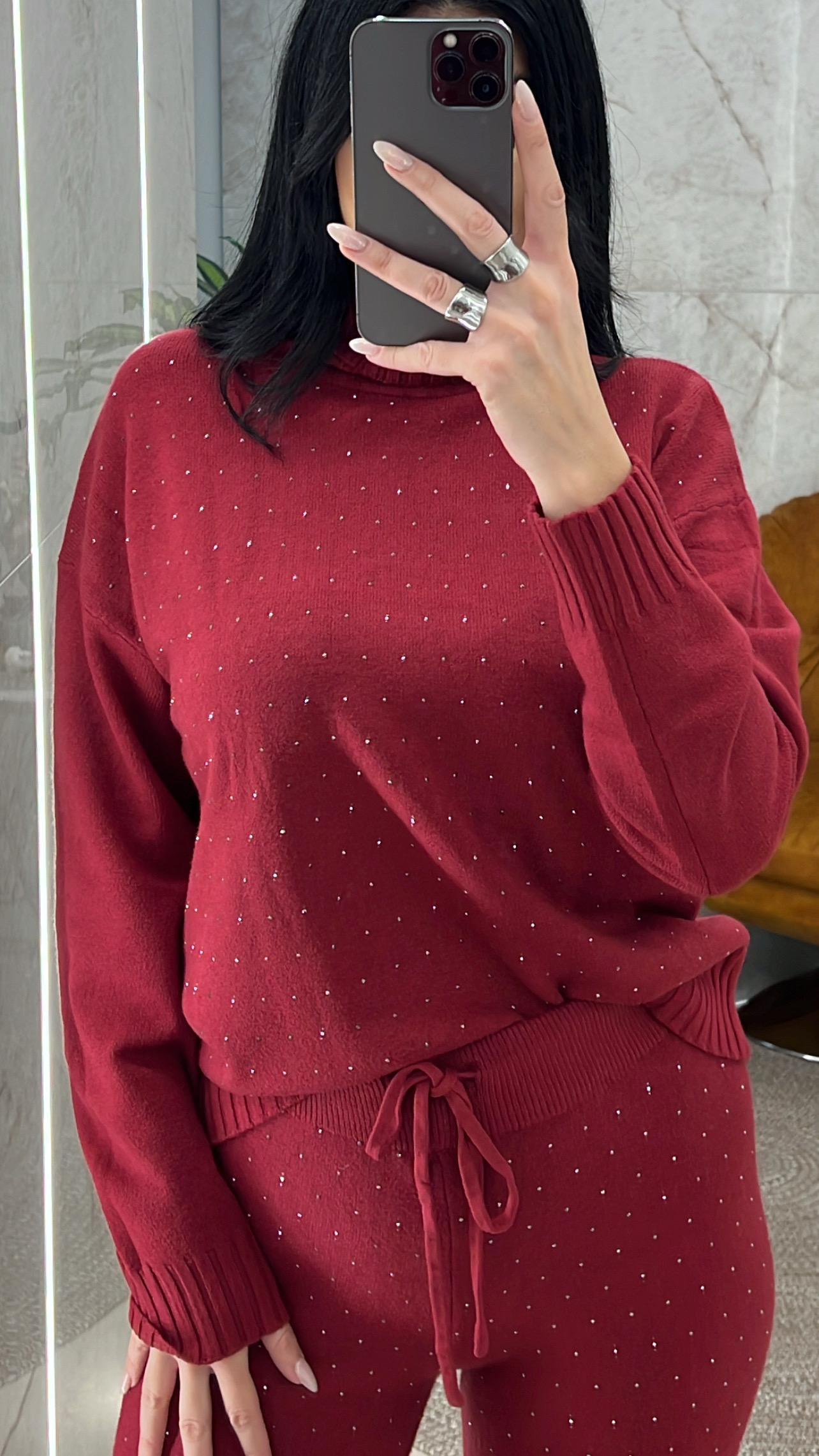 Πλεκτό Σετ Στρας-9217/Μπορντώ