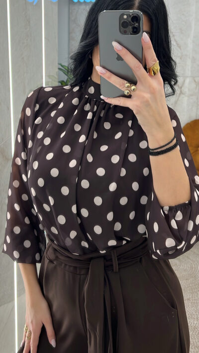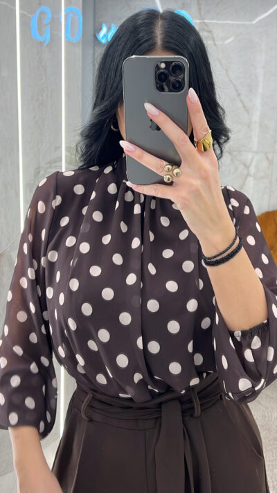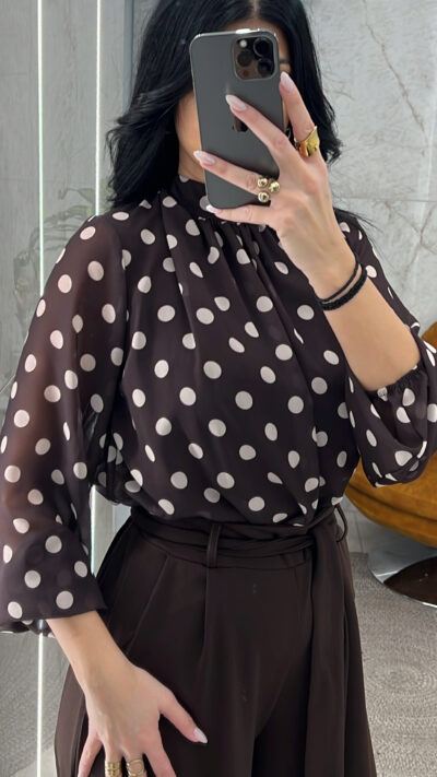 Πουά Μπλούζα Μουσελίνα/Καφέ
