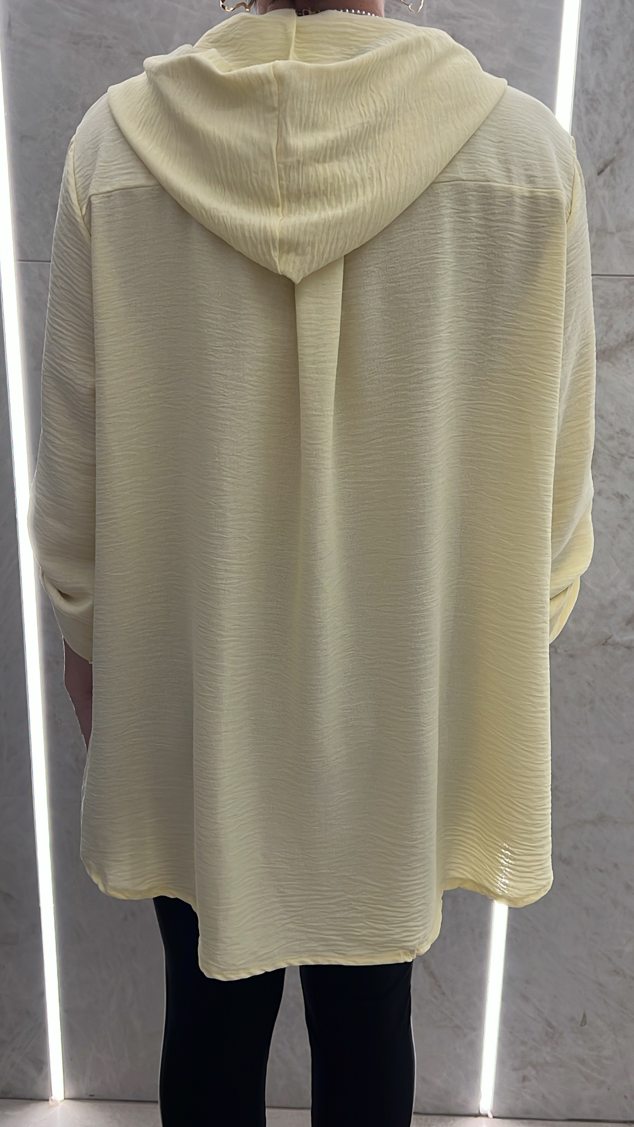 Πουκαμισα με κουκούλα ,εχει κουμπια ,ειναι πιο κοντο μπροστα και πιο μακρυ πισω .