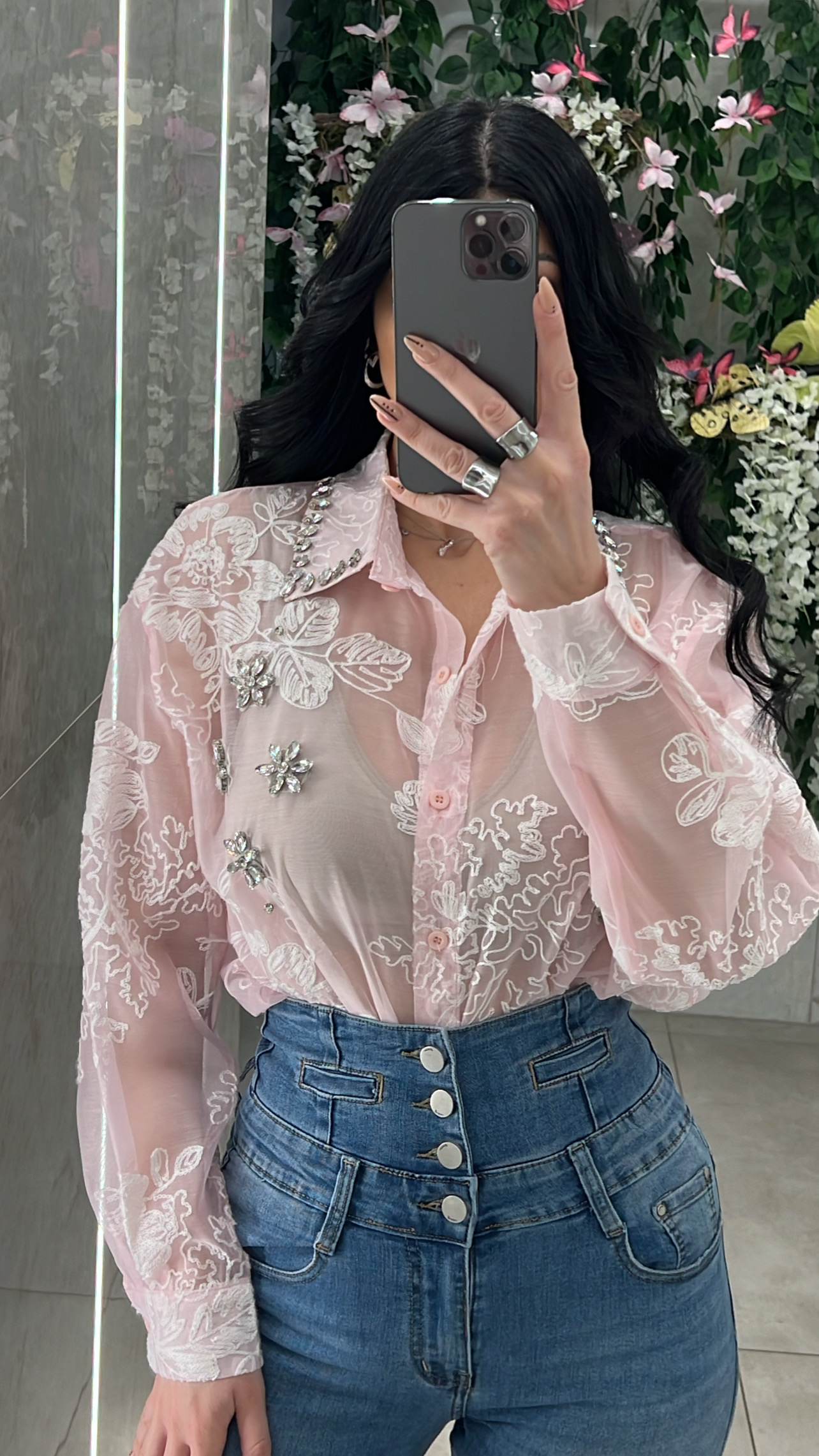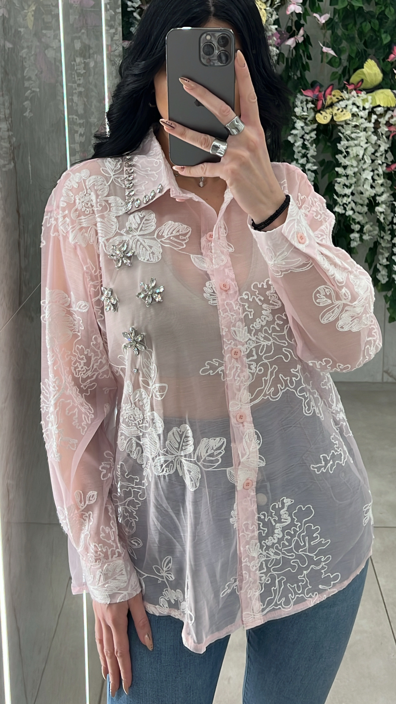 Μπλούζα Με Μανίκι Δαντέλα 22786/Ρόζ