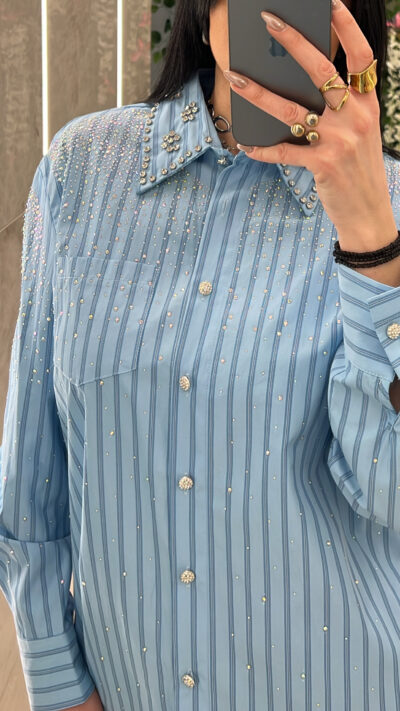 Πουκάμισο Ριγέ Με Στρας CH8349/ Γαλάζιο