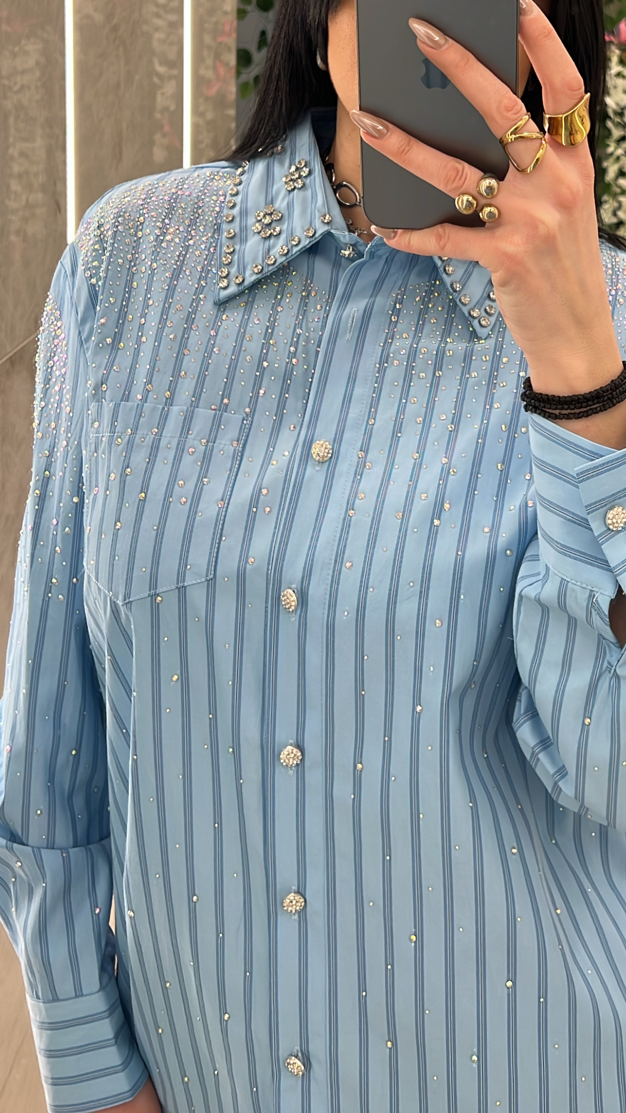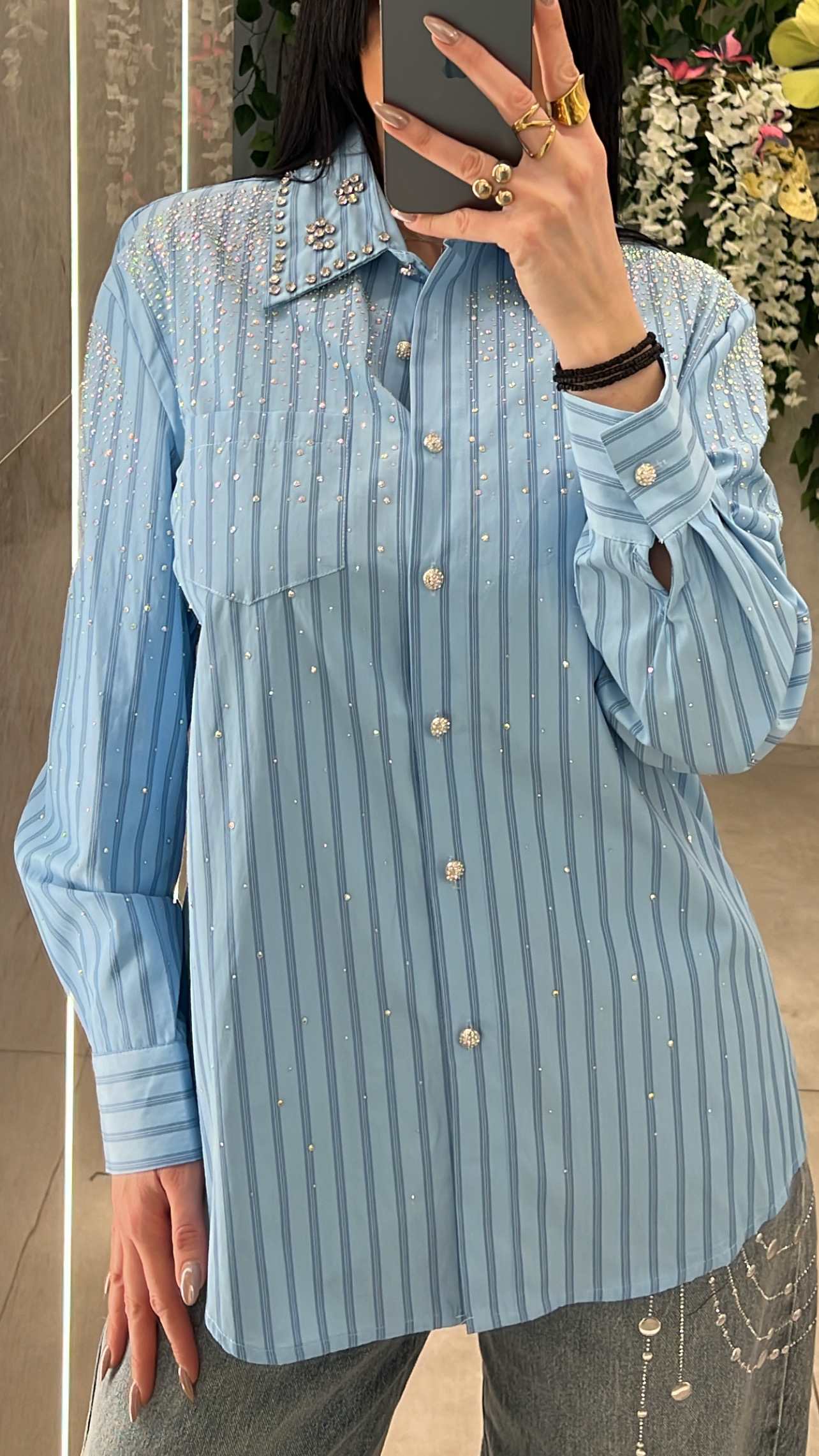 Πουκάμισο ριγέ με λεπτομέρειες στρας .