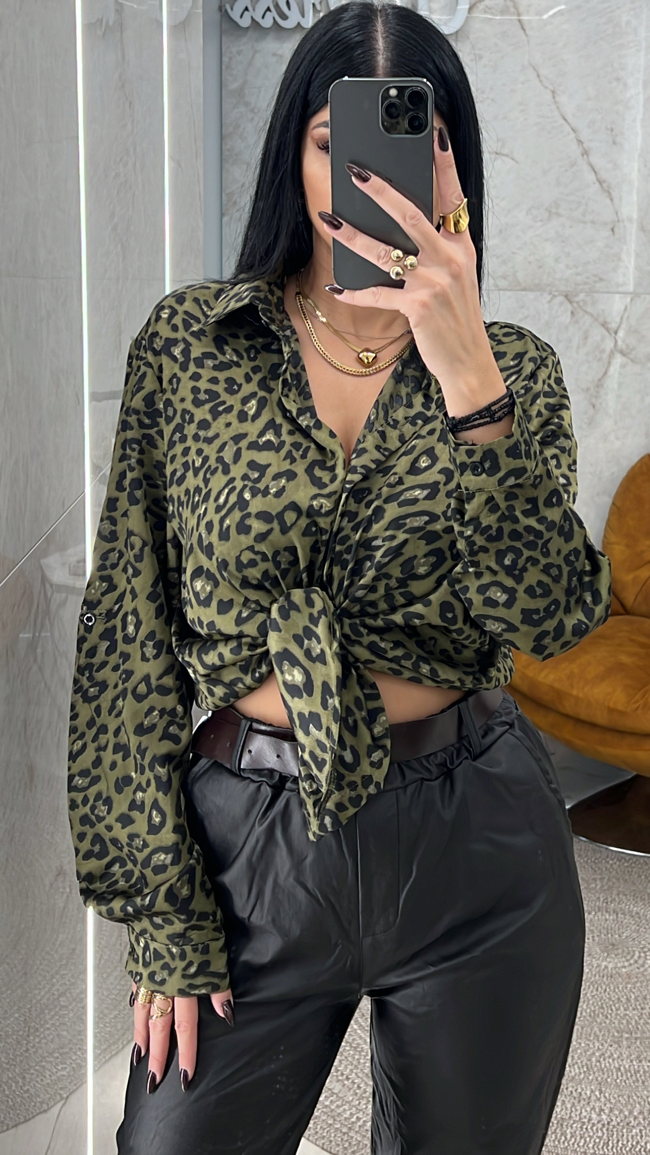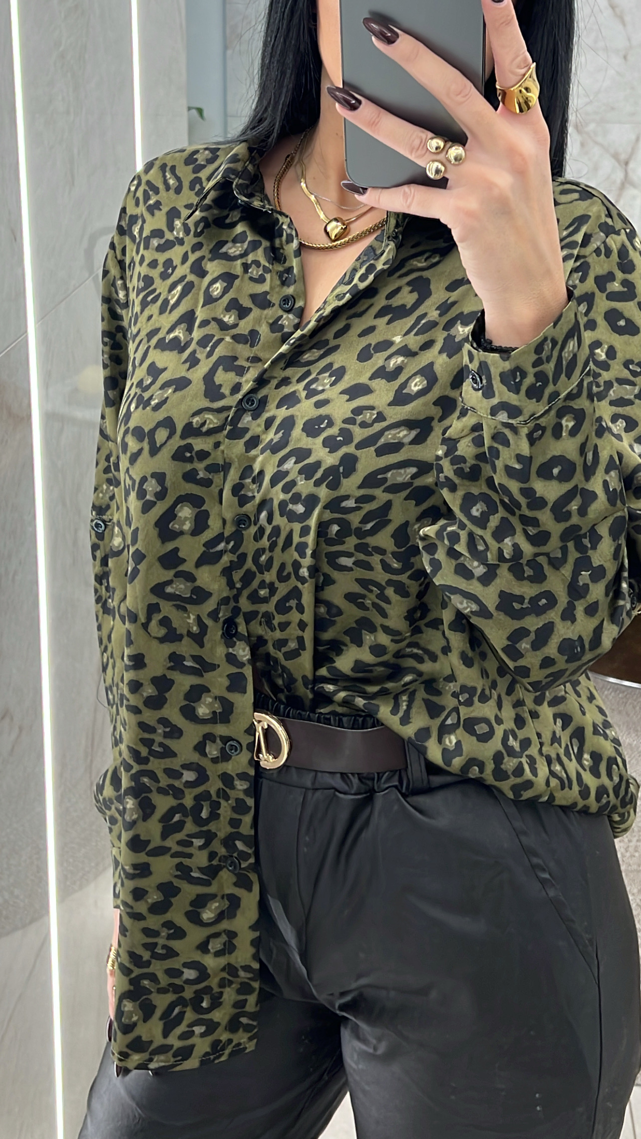 Πουκάμισο Σατέν Λεοπάρ/Χακί