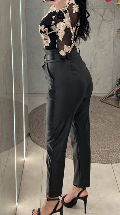 Ψηλόμεσο παντελόνι δερματίνη 2134/Μαύρο
