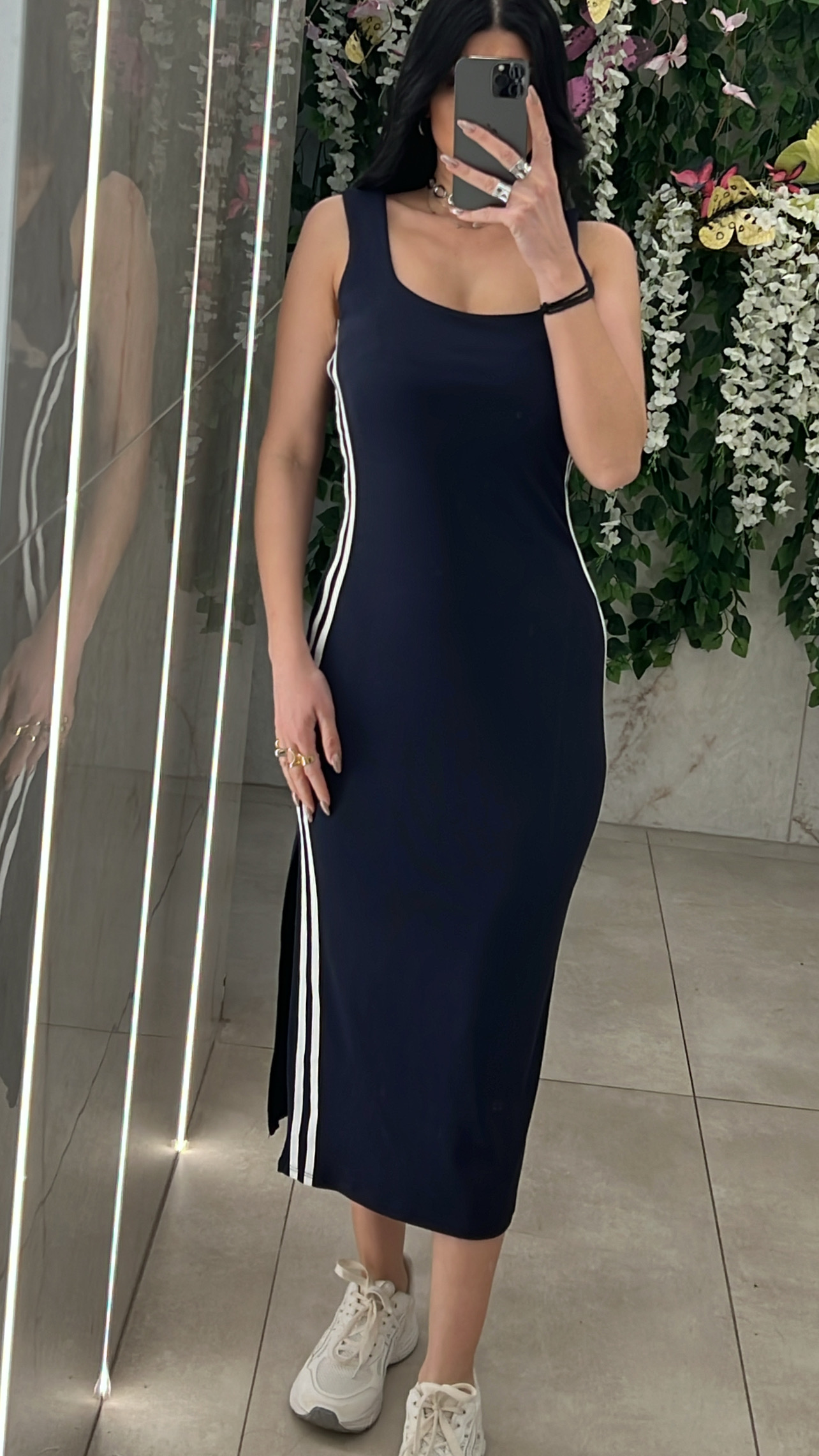 Ελαστικό midi φόρεμα με διπλή ρίγα  και σκίσιμο στο πλαι .