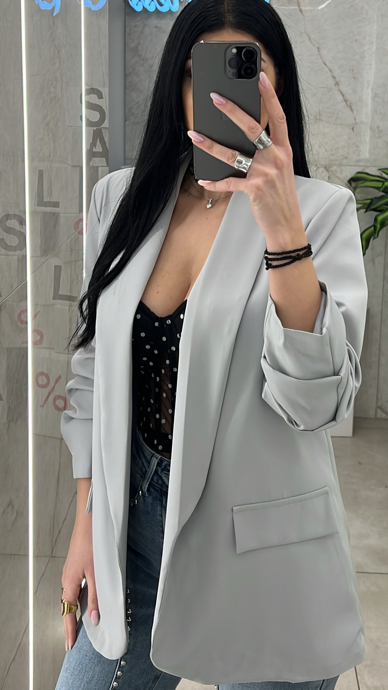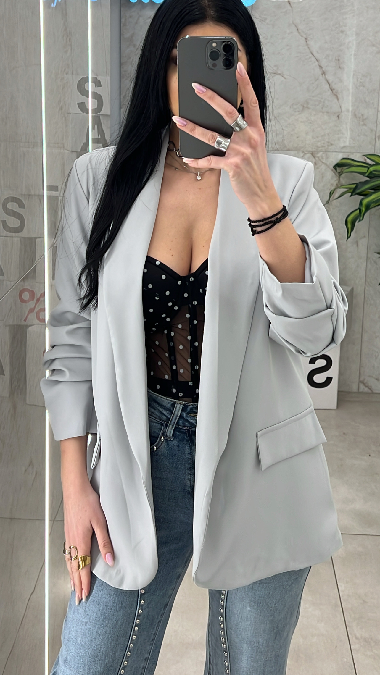 Σακάκι με σούρα στα μανίκια είναι φοδραρισμένο από μέσα και διαθέτει βάτες