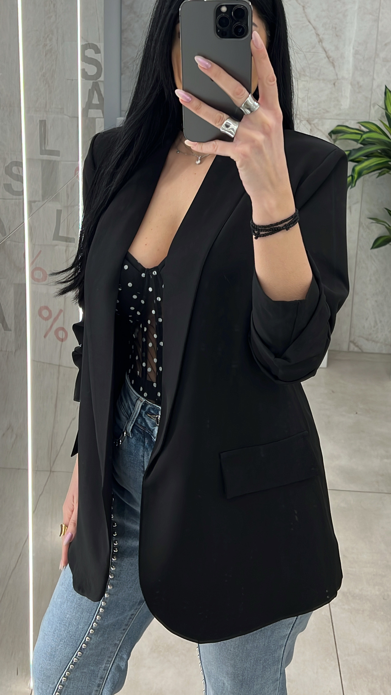 Σακάκι με σούρα στα μανίκια είναι φοδραρισμένο από μέσα και διαθέτει βάτες