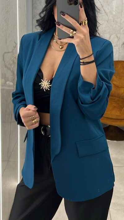 Σακάκι με σούρα στα μανίκια είναι φοδραρισμένο από μέσα και διαθέτει βάτες