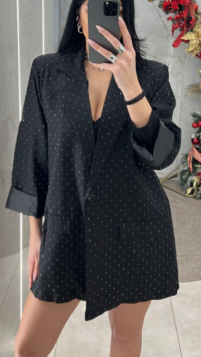 Σακάκι oversized με στρας έχει φόδρα εσωτερικά κλείνει με κουμπί και έχει βάτες