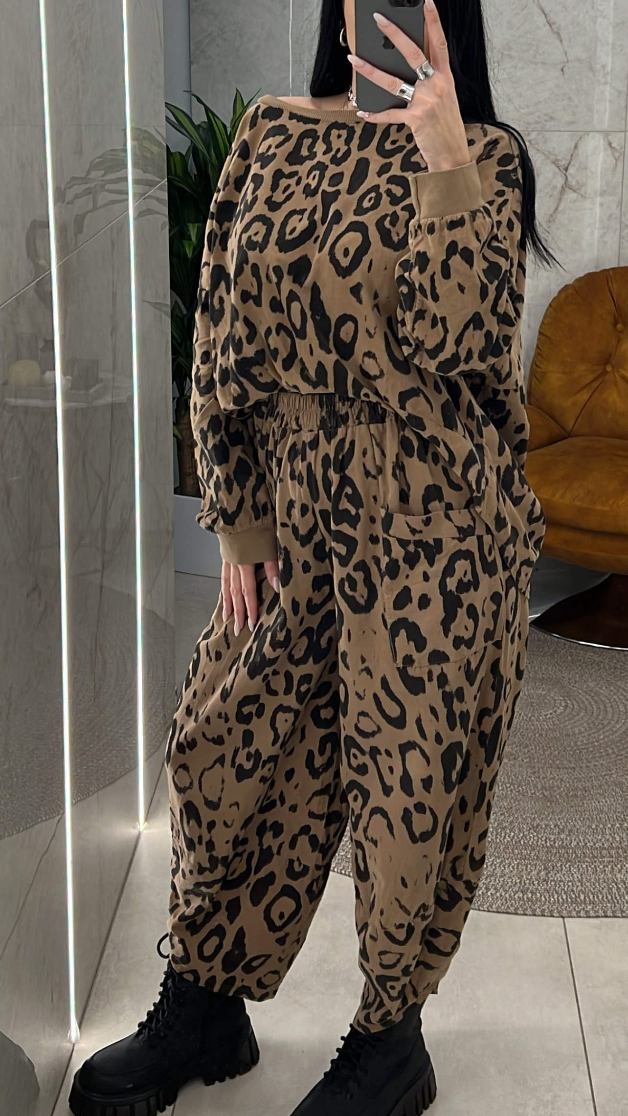 Σετ λεοπάρ ματζέντα με παντελόνι aladdin με τσέπες μπροστά και λάστιχο στη μέση