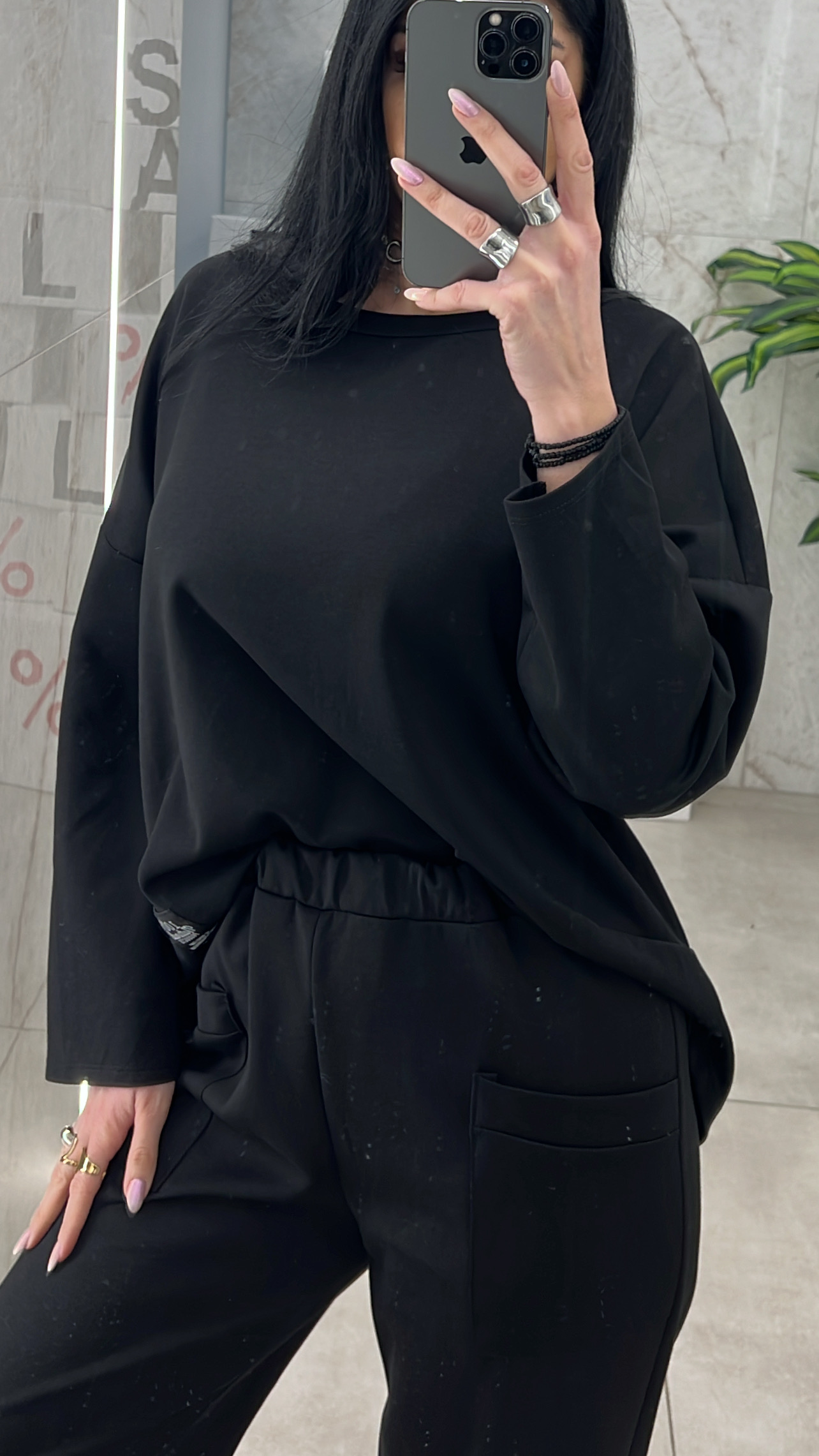 Σετ casual oversised. Το παντελόνι έχει λάστιχο στην μέση και είναι σαλβάρι