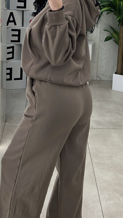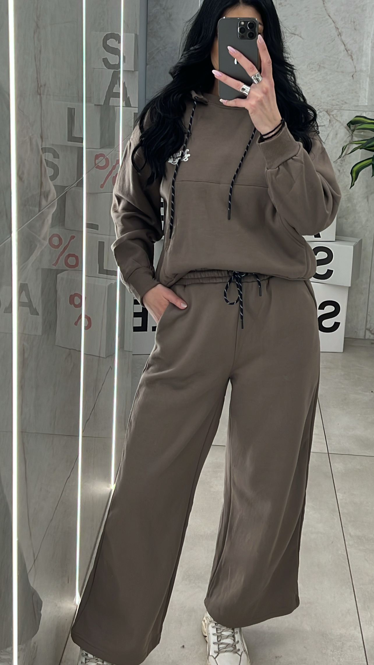 Σετ φόρμα με εσωτερική επένδυση , μπλούζα με τσέπες ,κουκούλα και κορδόνι και παντελόνι με λάστιχο ,κορδόνι και τσέπες .