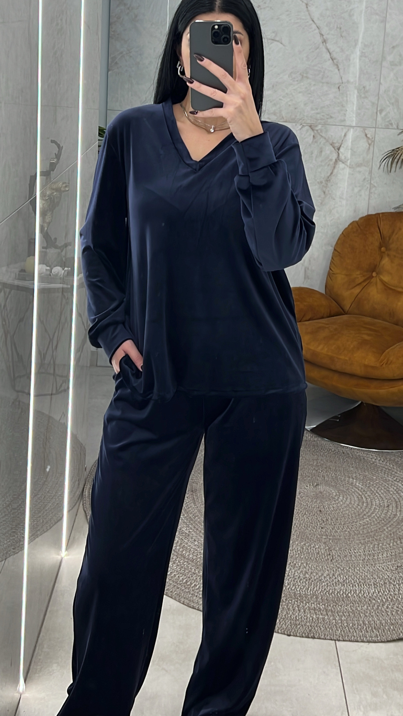 Σετ φόρμα βελουτέ 2489/Μπλε σκούρο